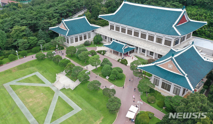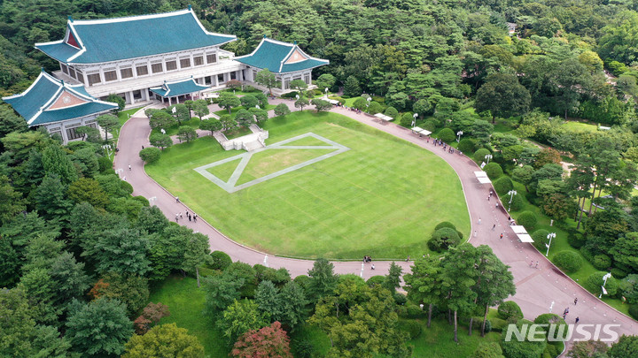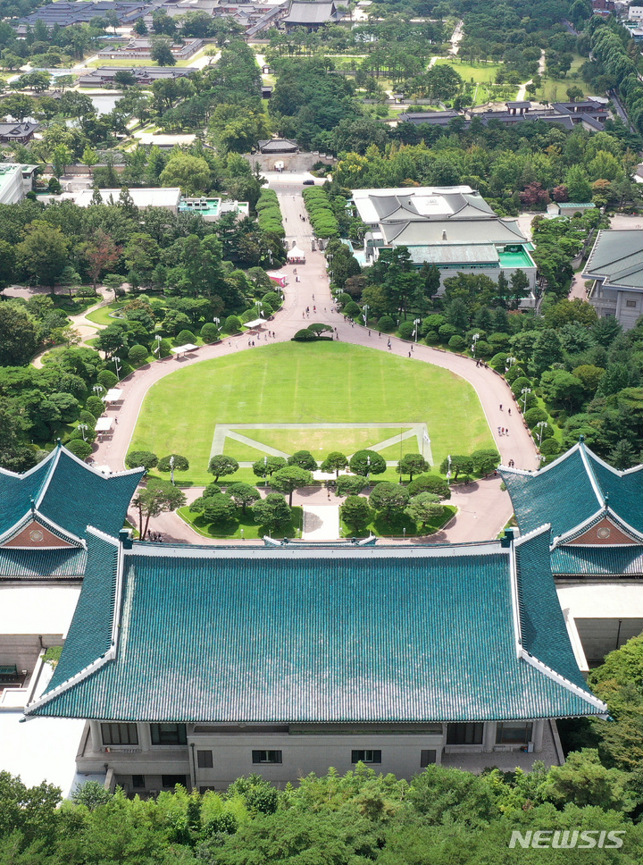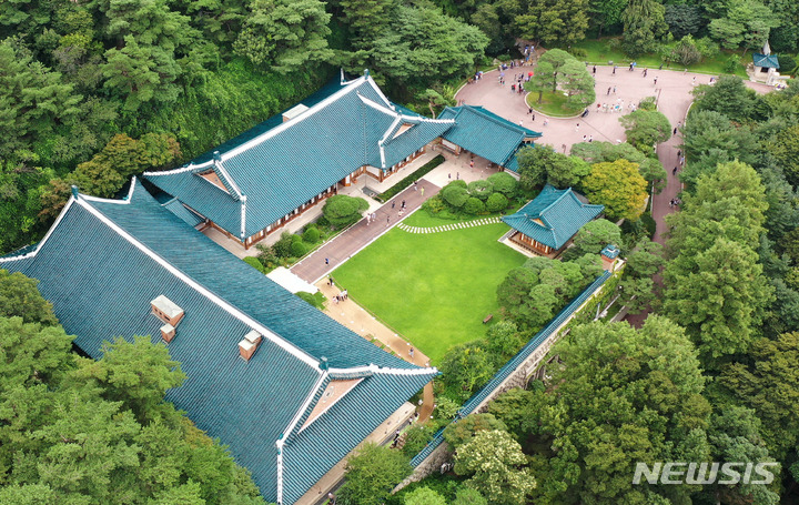 今年5月10日に青瓦台が全面開放されてから100日になった17日午前、ソウル市鍾路区の青瓦台を見て回る市民の様子。
