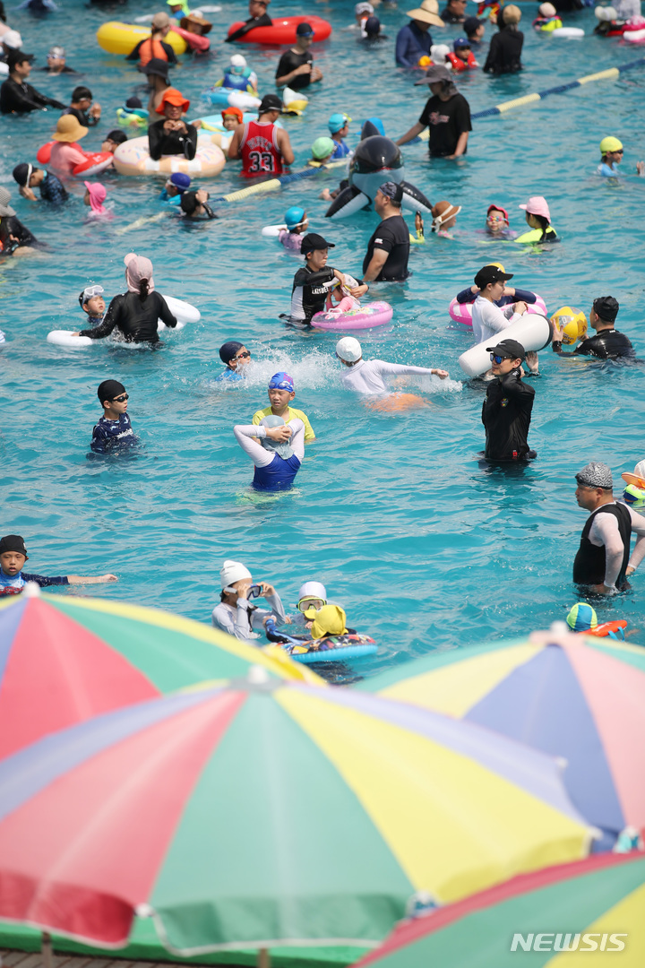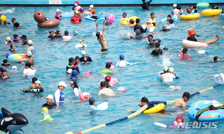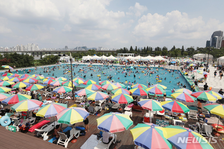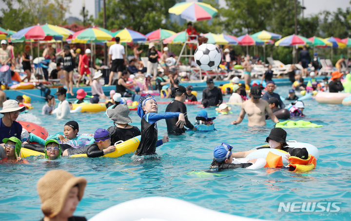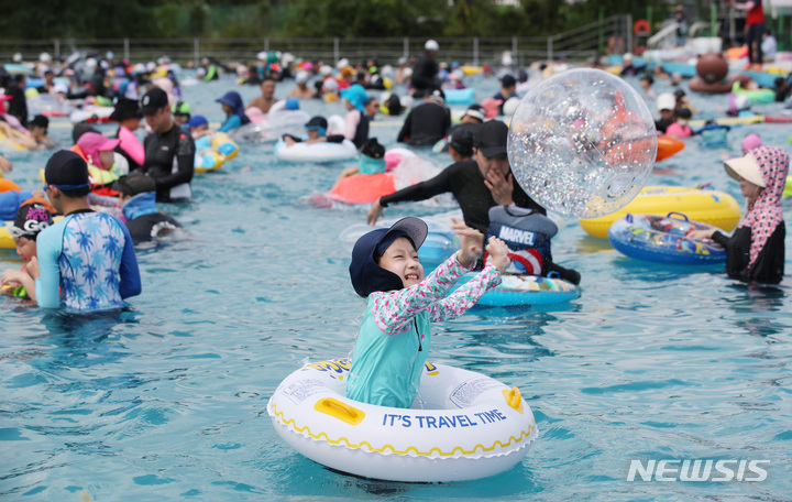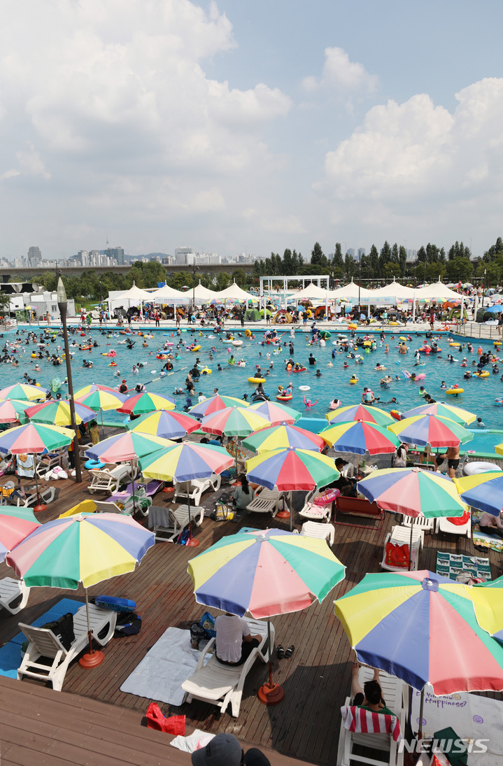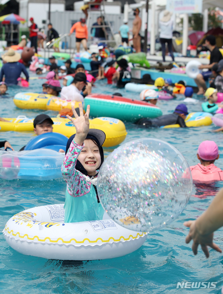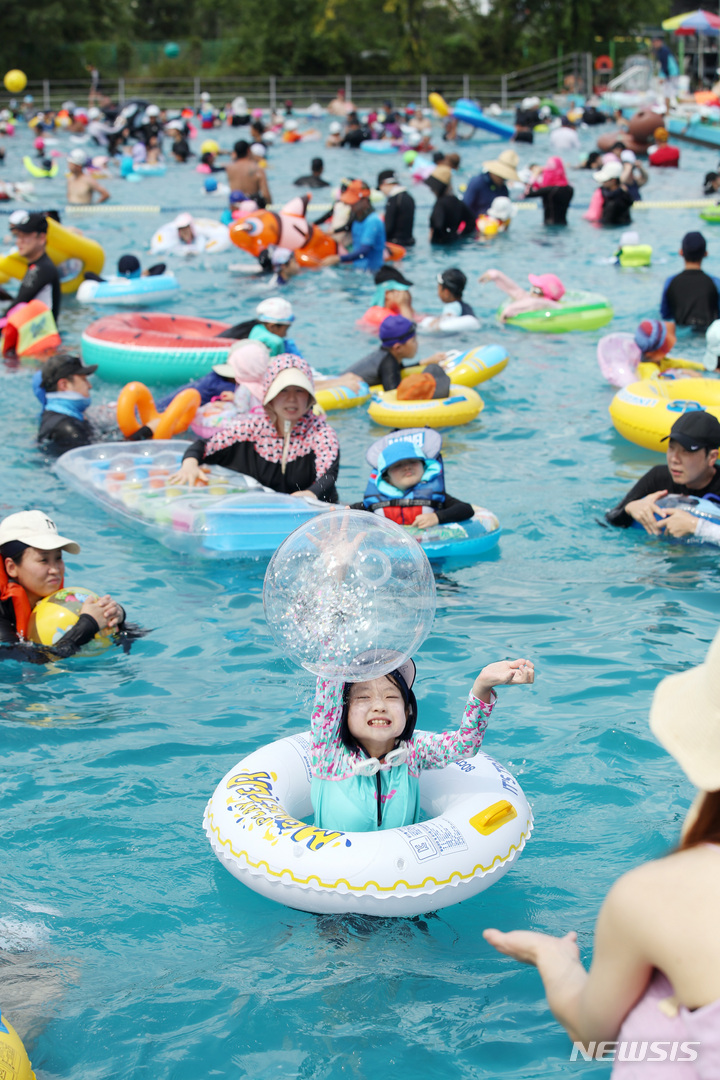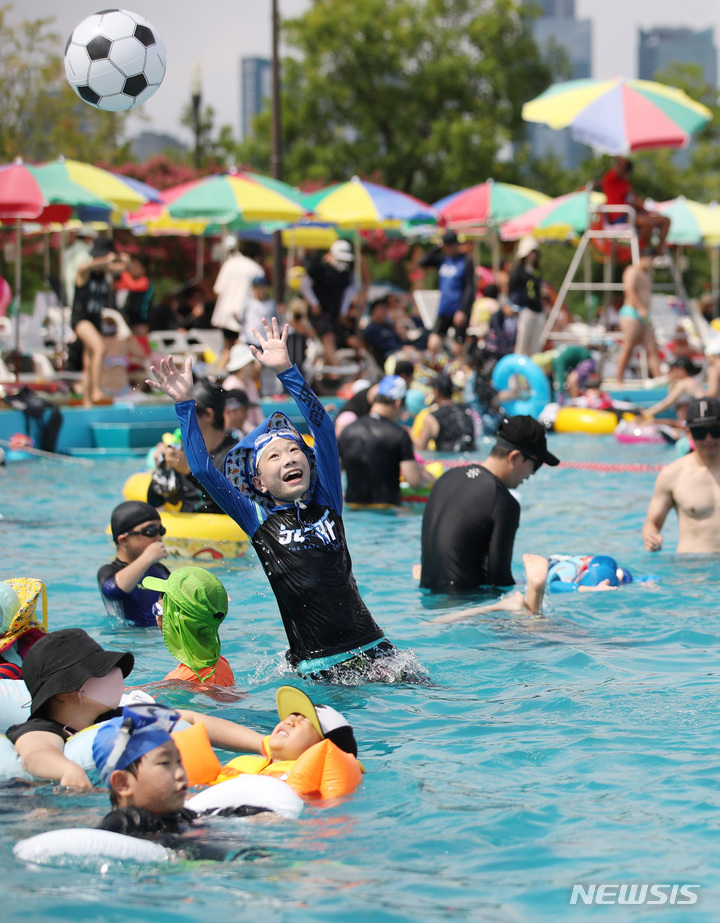 【NEWSIS】今年の営業最終日だった21日、ソウル・汝矣島漢江公園プールで遊ぶ子どもたち。