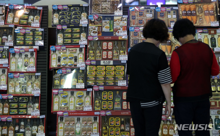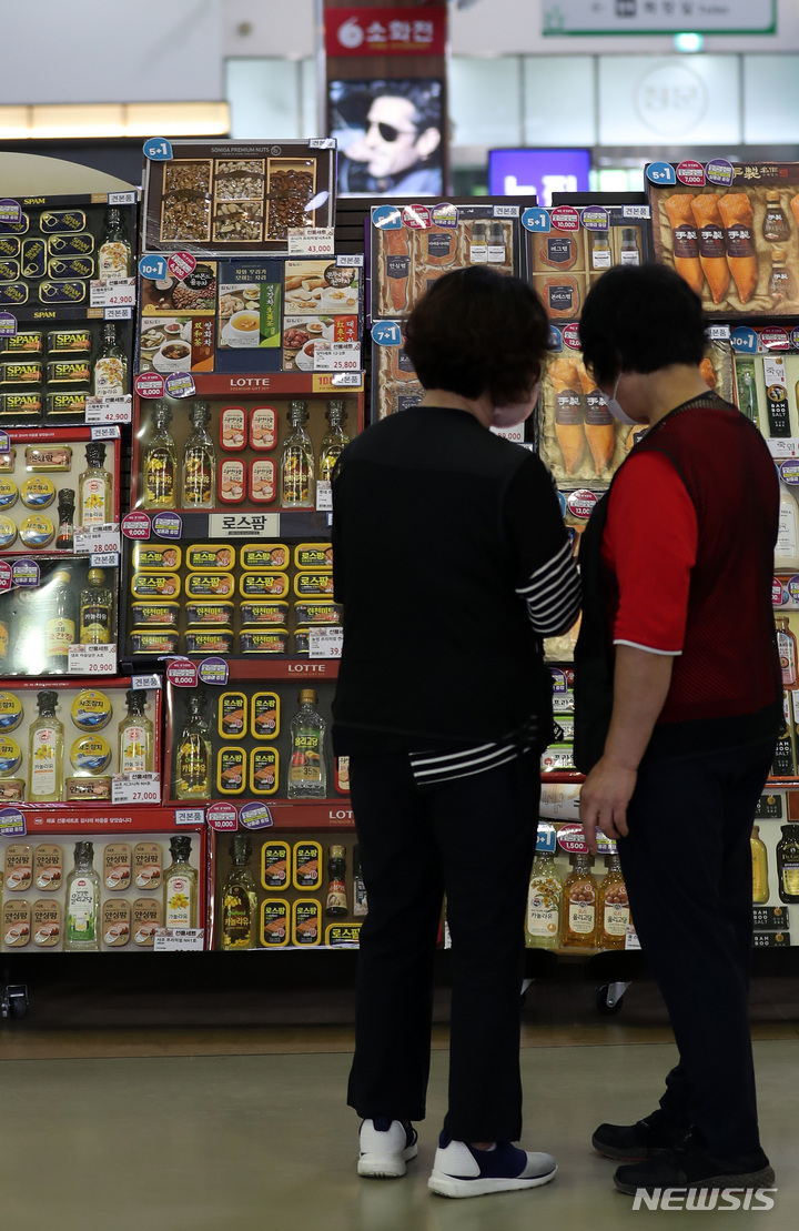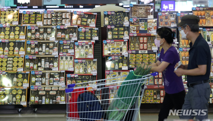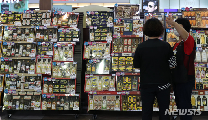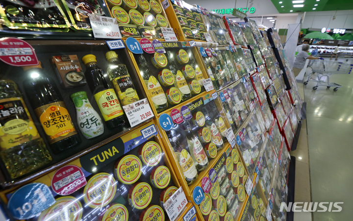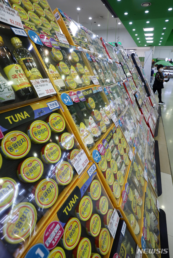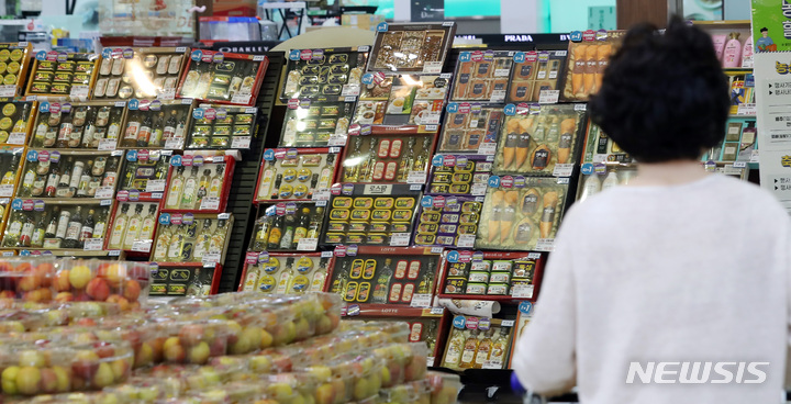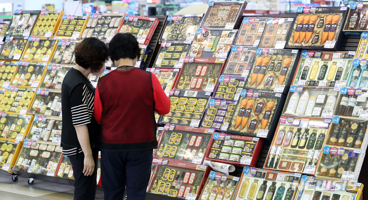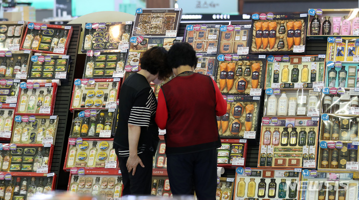 ソウル市瑞草区の大手スーパー「ハナロマート良才店」で22日午前、秋夕(中秋節。今年は9月10日)のギフトセットが販売されている様子。