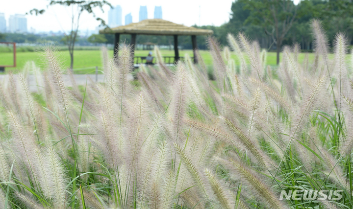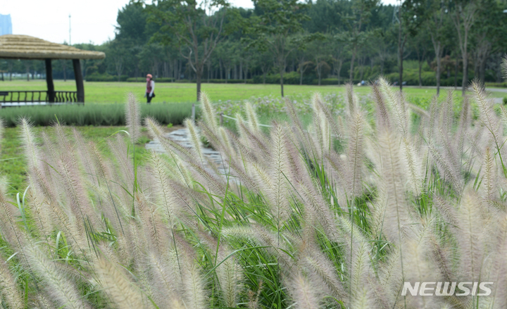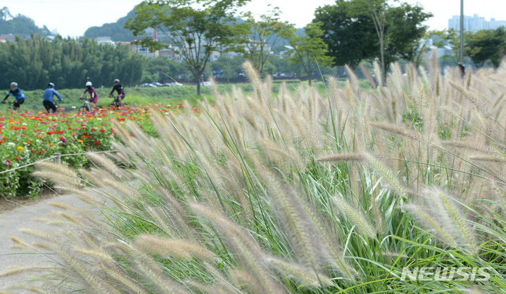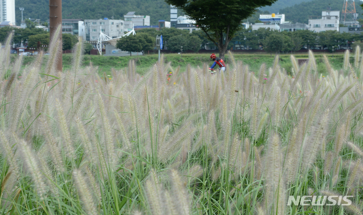 二十四節気の一つ「処暑」に当たる23日午前、蔚山市南区の三湖橋付近では、秋の伝道師「チカラシバ」が大きな穂を作っていた。