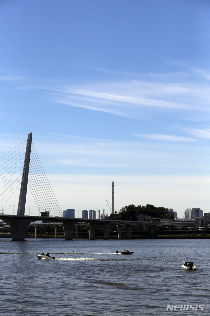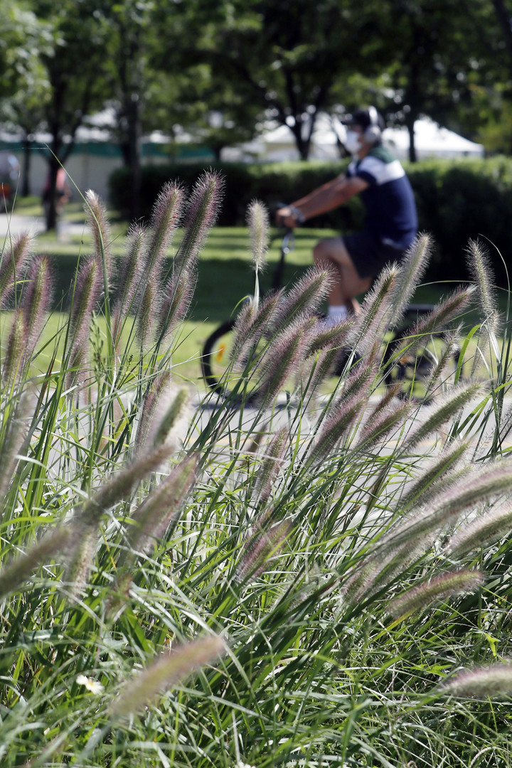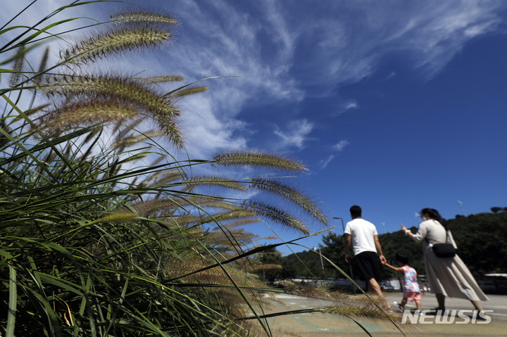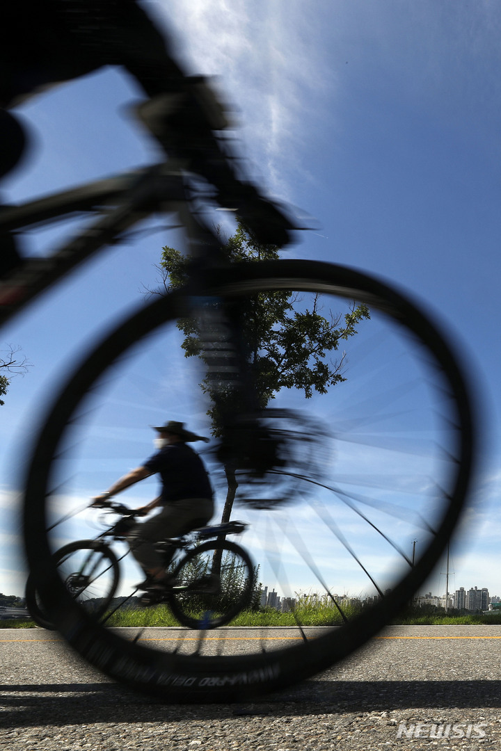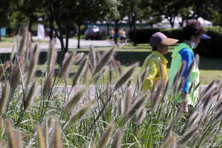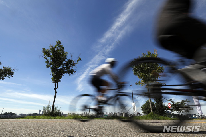 【NEWSIS】初秋を思わせる天気となった28日、ソウル市麻浦区の蘭芝漢江公園でランニングをする人。