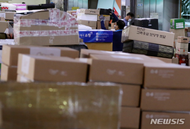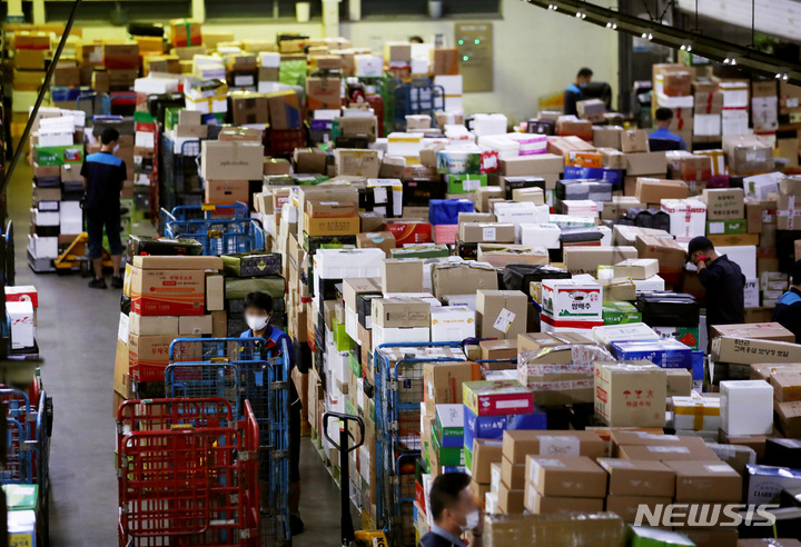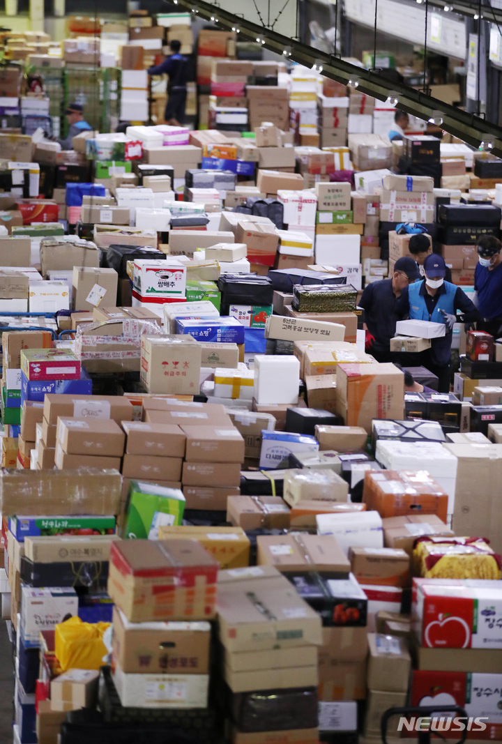 秋夕の名節を前に積み上げられる宅配物