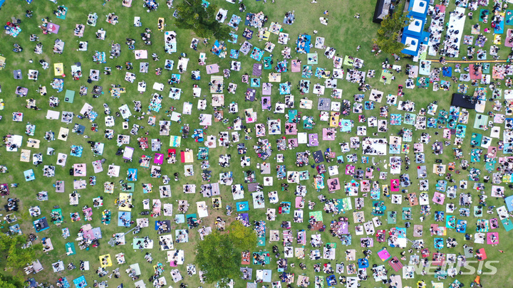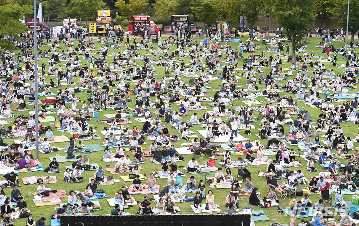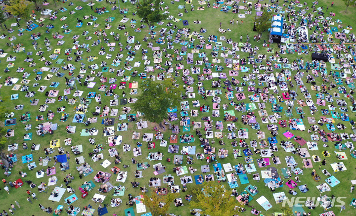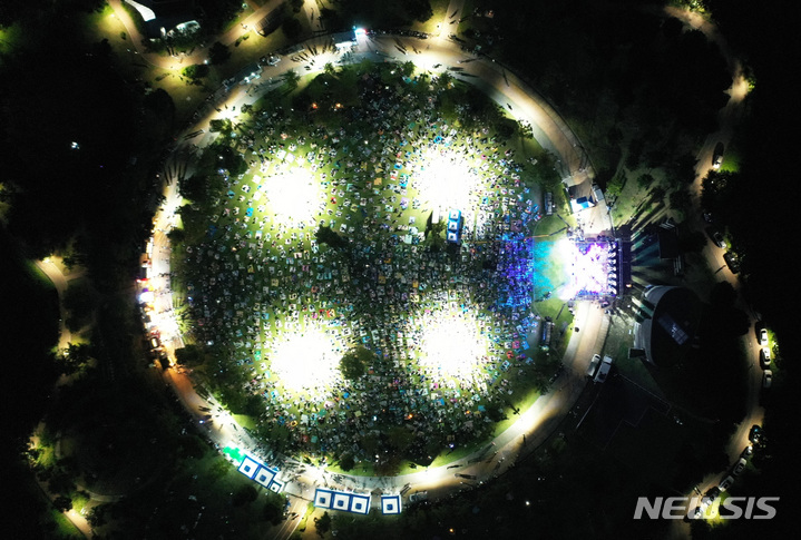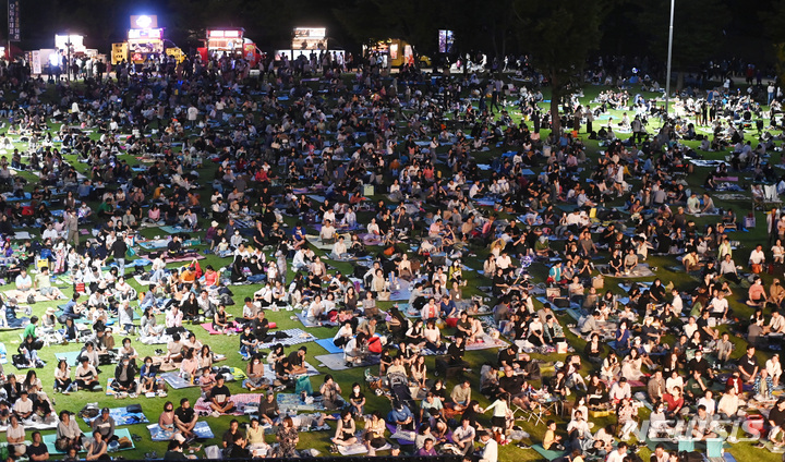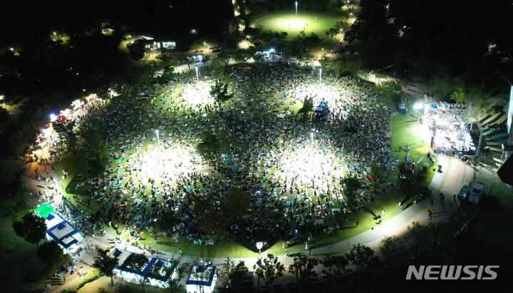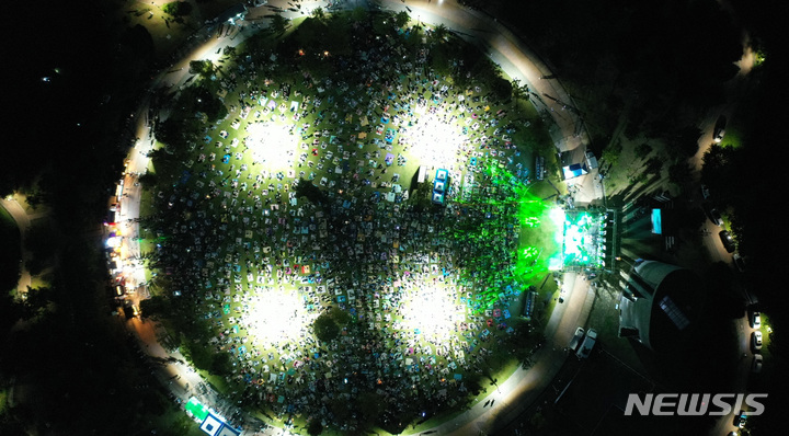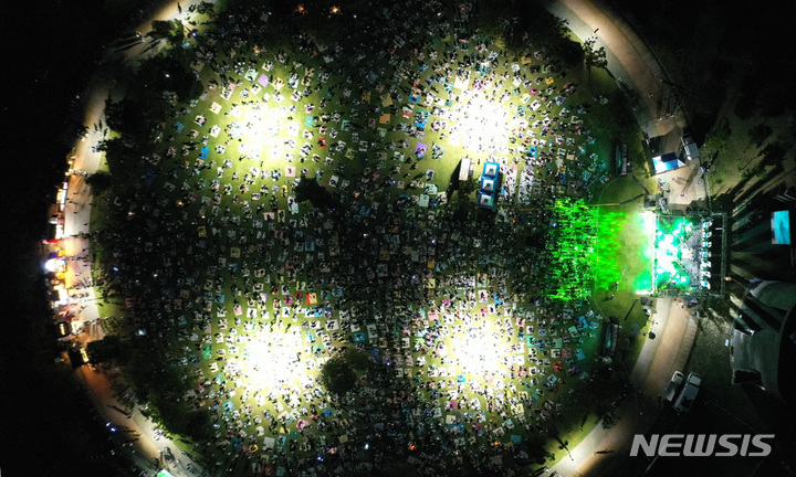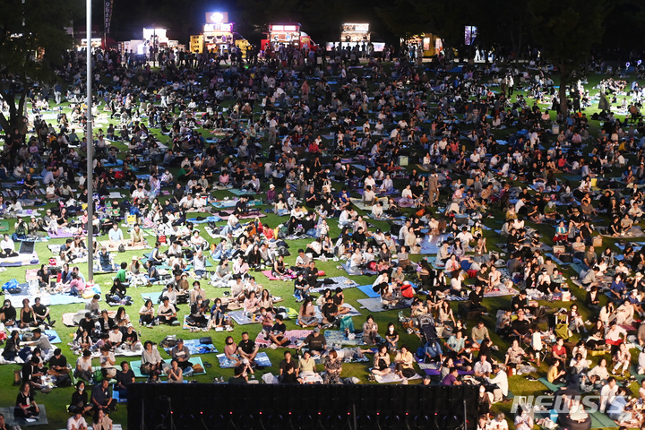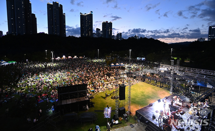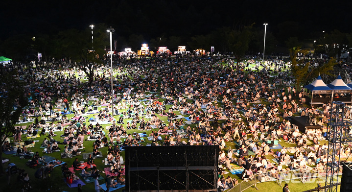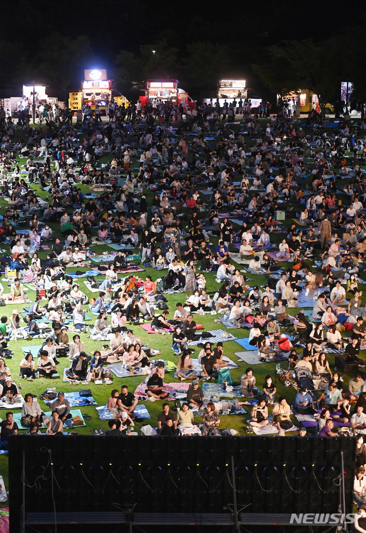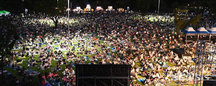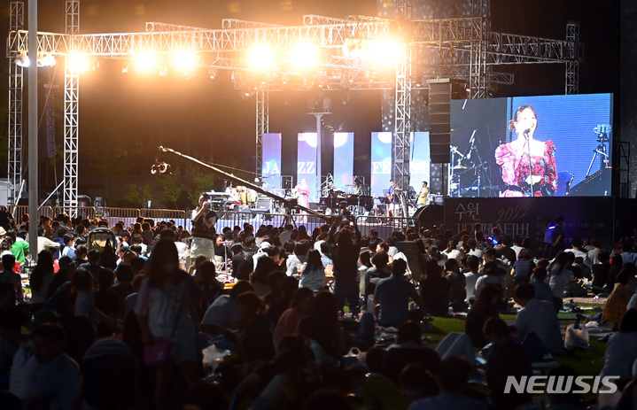 2022水原ジャズフェスティバルが開かれた2日午後、光教湖水公園(京畿道水原市)の「チェミナンバッ」では、公演を鑑賞する市民が芝生広場をぎっしり埋めていた。