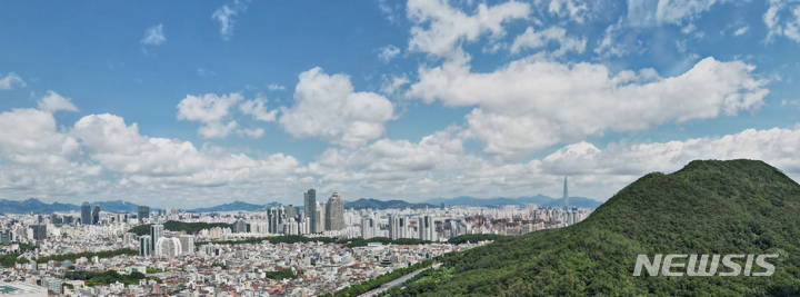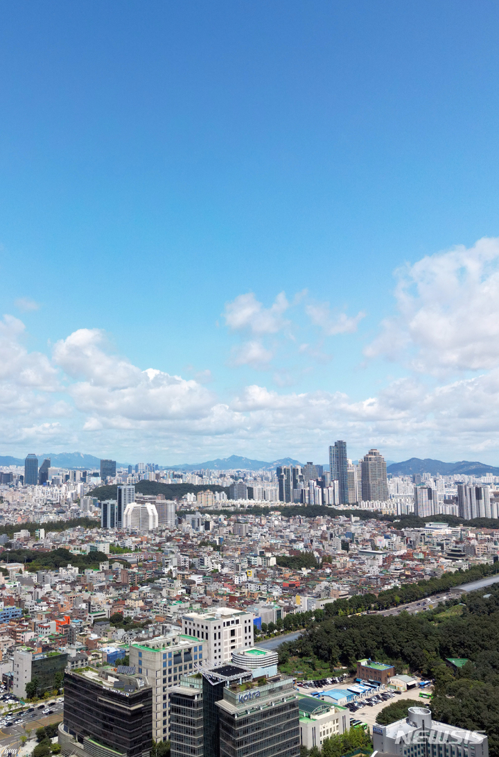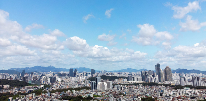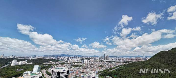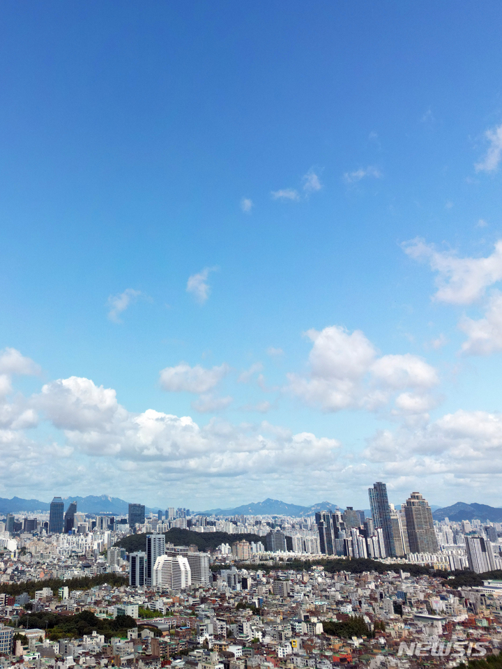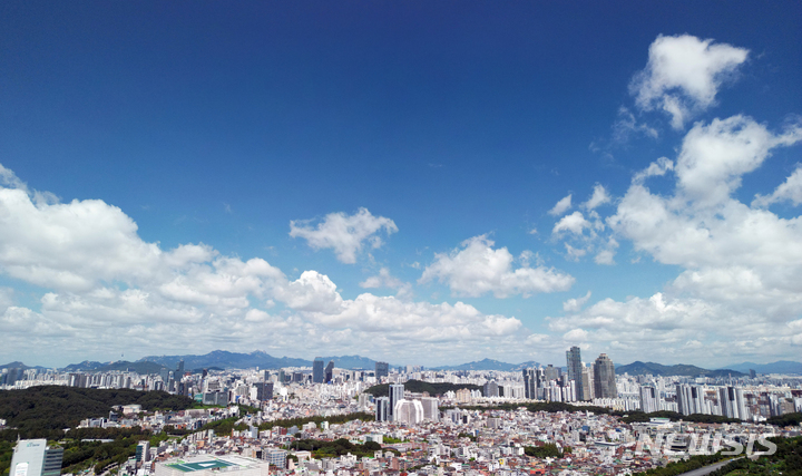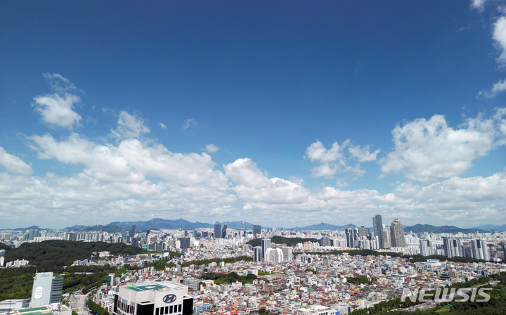 台風11号(アジア名:ヒンナムノー)が通過した6日、青空が広がったソウル都心の様子。