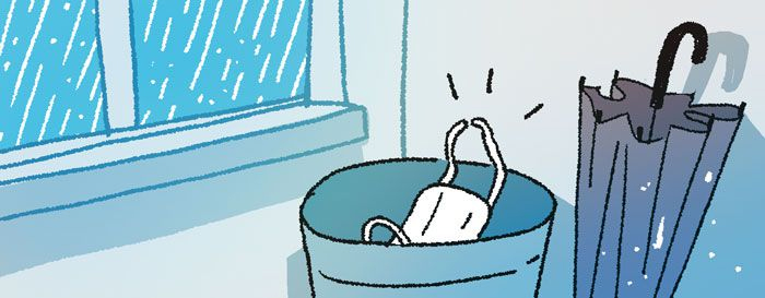 雨でぬれたマスクはできるだけもう使わない方がいい。感染予防効果が落ちるだけでなく、細菌やカビが繁殖する恐れもある。