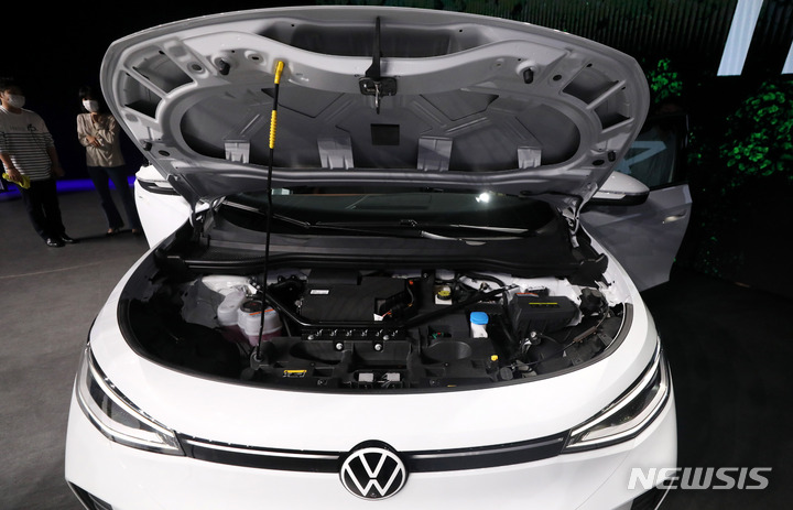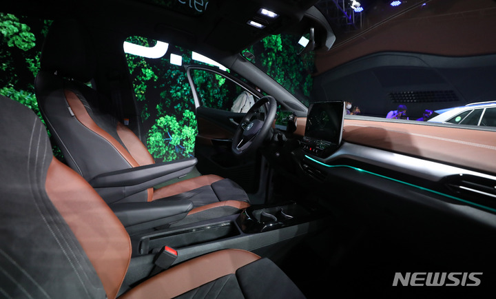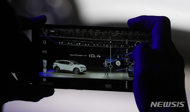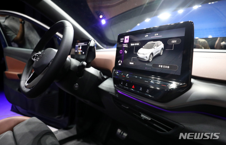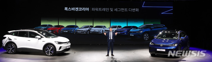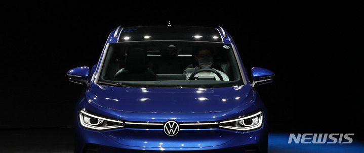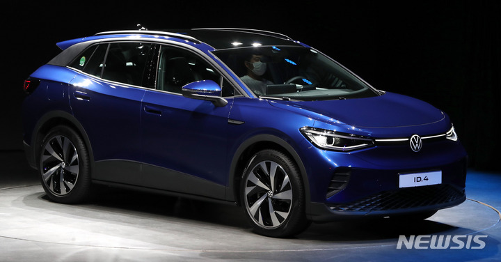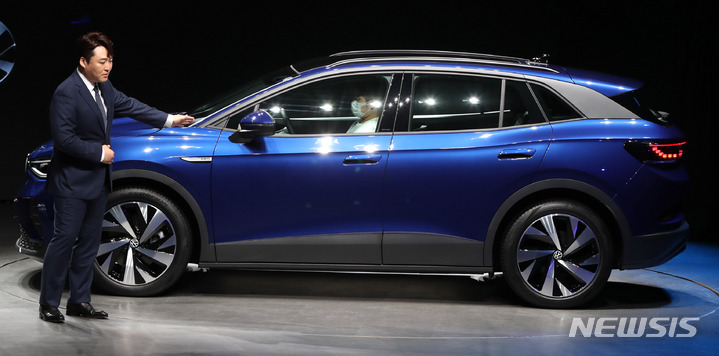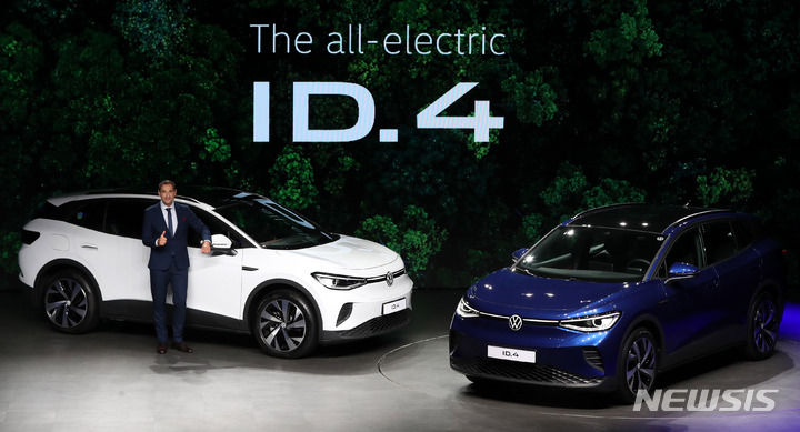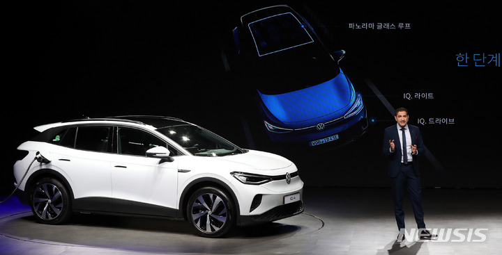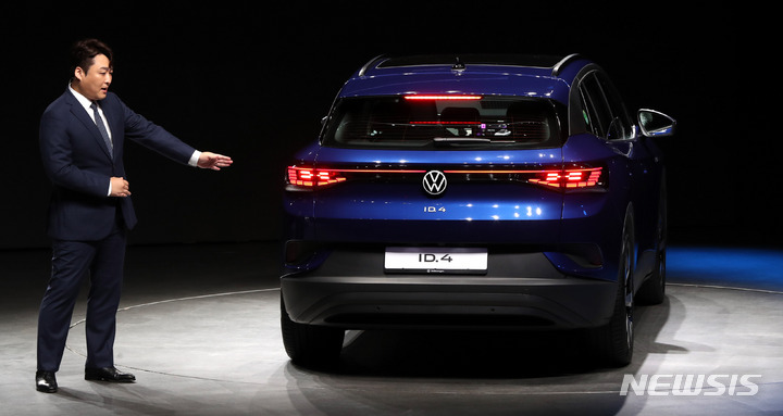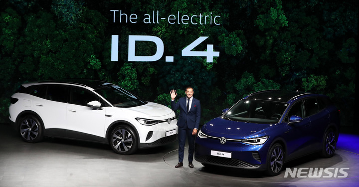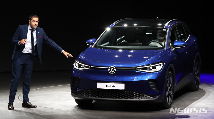 フォルクスワーゲン・コリアのサシャ・アスキジアン社長が15日午前、ソウル市広津区のビスタ・ウォーカーヒル・ソウルで、フォルクスワーゲン初の純粋電気自動車SUV(スポーツタイプ多目的車)「ID.4」を公開している。