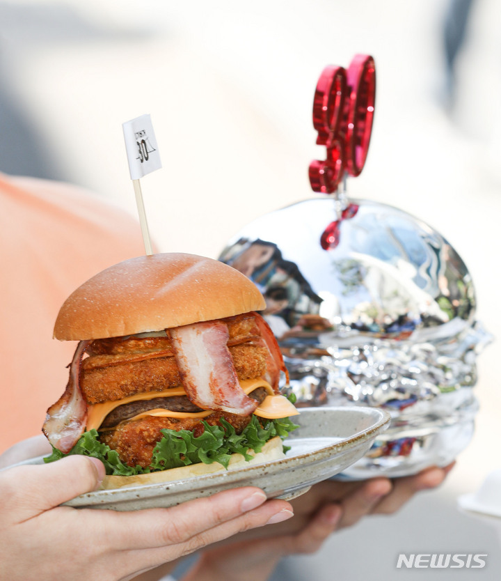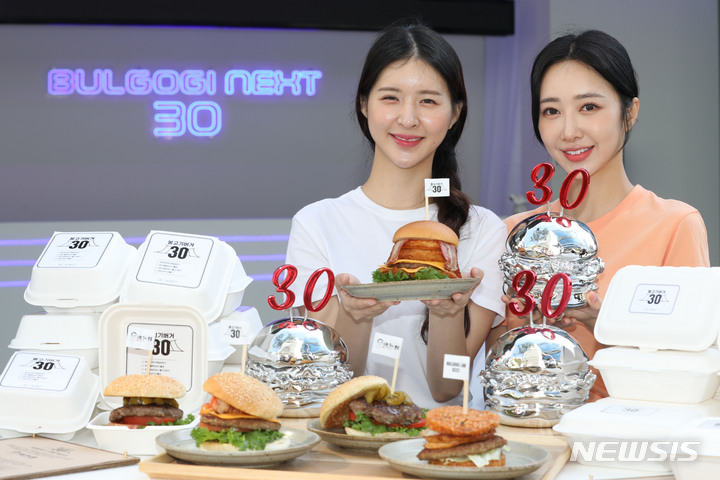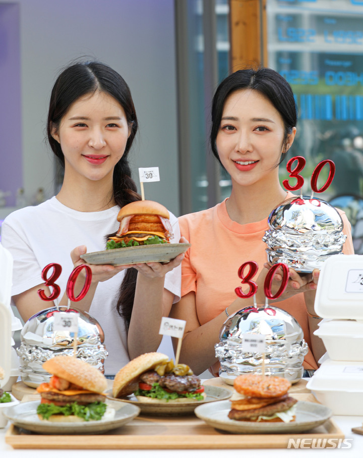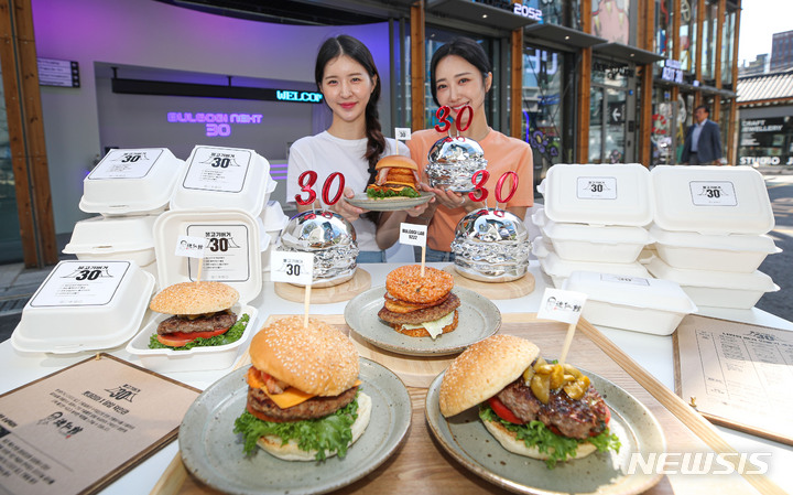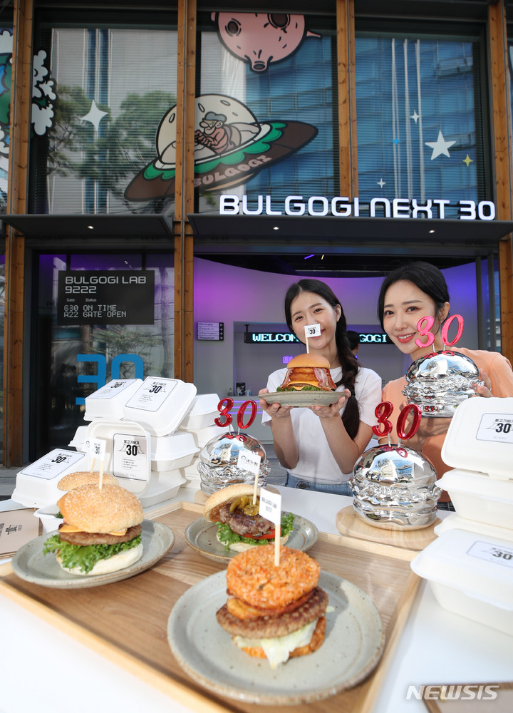 ロッテリアが22日午前、プルゴギバーガー発売30周年を記念してソウル市鍾路区益善洞にオープンしたポップアップストア「プルゴギラボ9222(BULGOGI LAB 9222)」にて、ここだけで味わえるタッカルビバーガーなど4種類のメニューをPRしている。