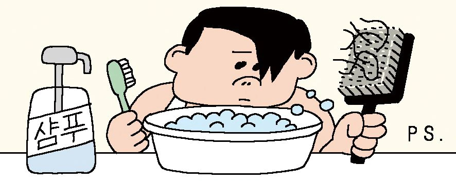 汚れたヘアブラシはシャンプーを溶いて泡立てた水に10分以上浸した後、古い歯ブラシでこするときれいになる。週に一度くらいきれいにすれば十分だ。