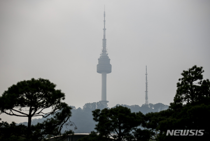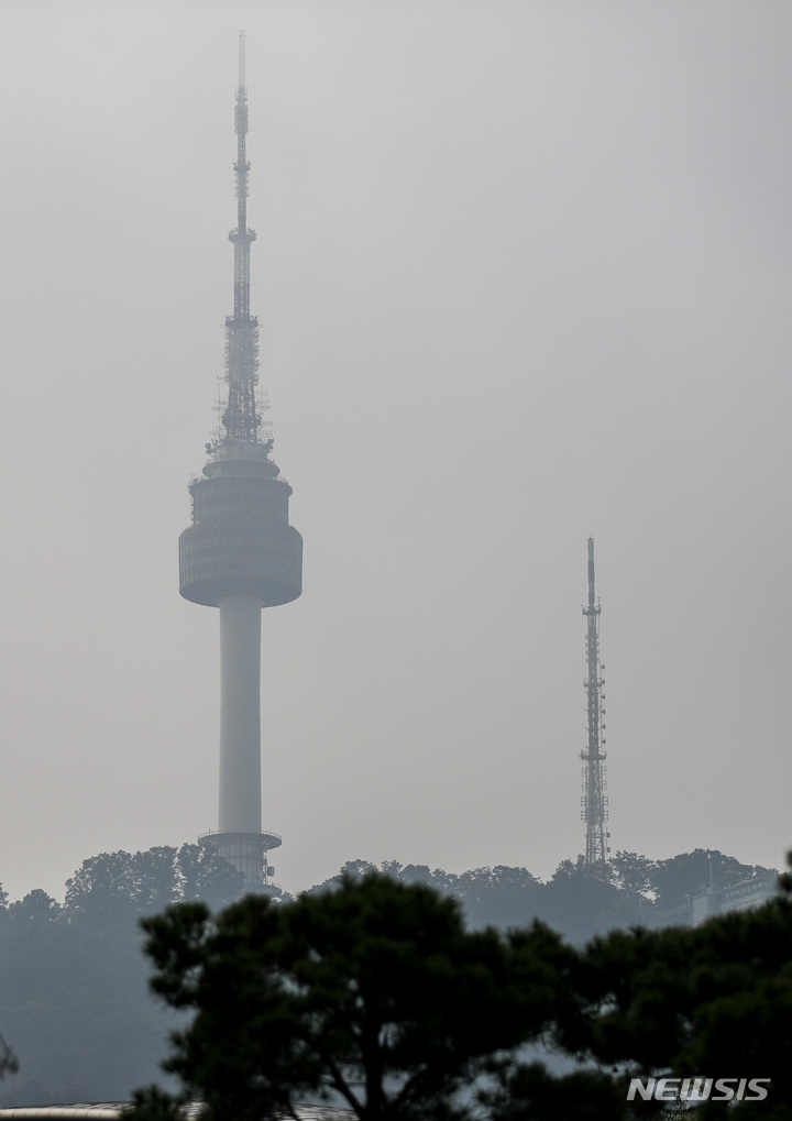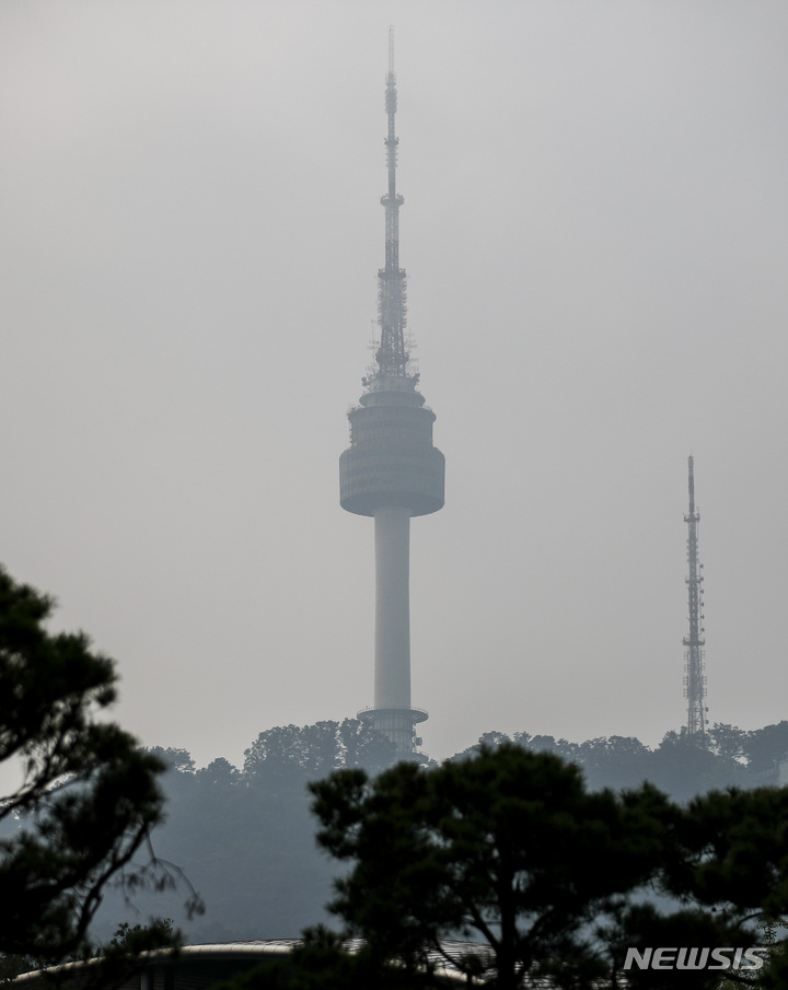 【NEWSIS】首都圏を中心にPM2.5などの微小粒子状物質の濃度が「不良」レベルとなった29日午前、ソウル市中心部から見たNソウルタワーはかすんでいた。
