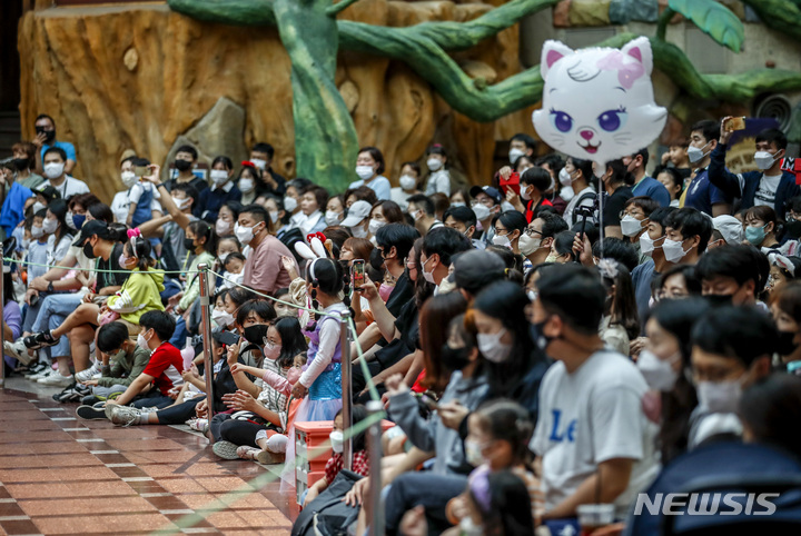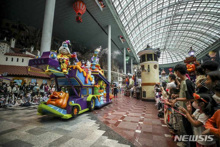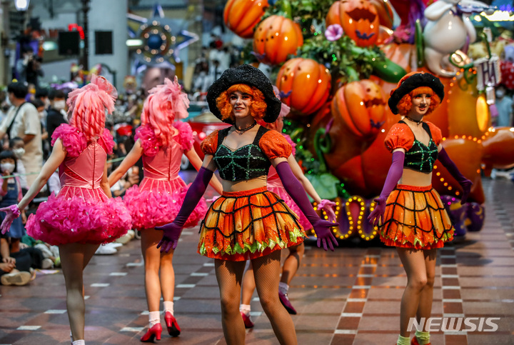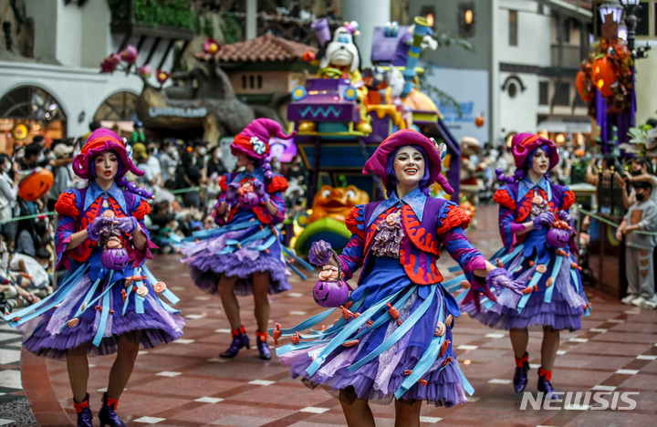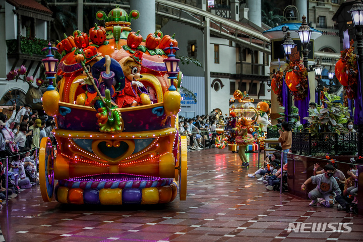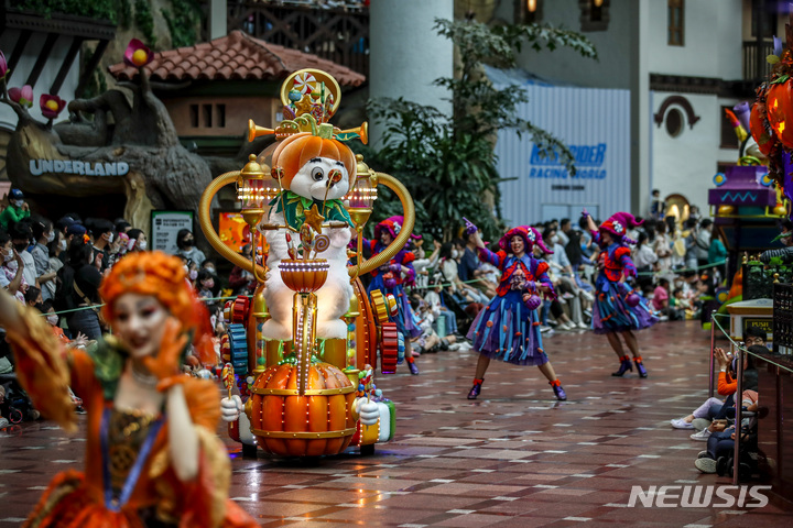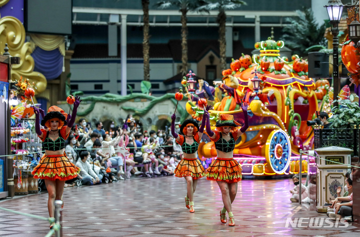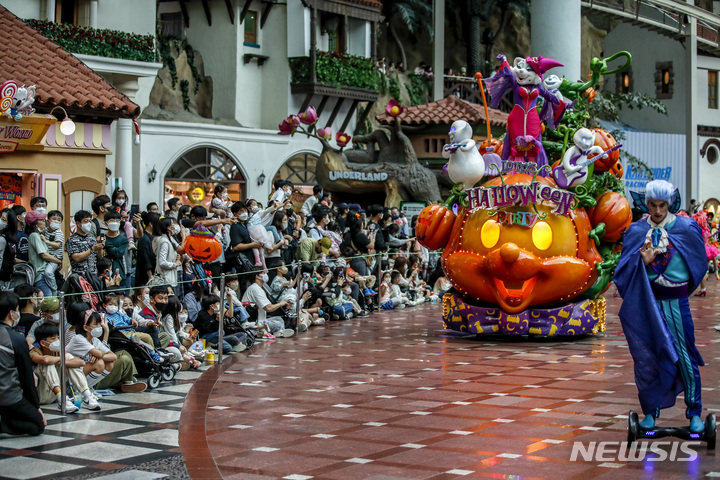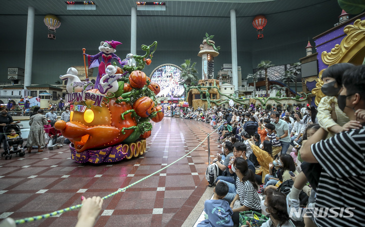 ソウル市松坡区のロッテワールドで3日午後、訪れた市民が「Lotty’s Halloween Party Parade」を楽しんでいる様子。