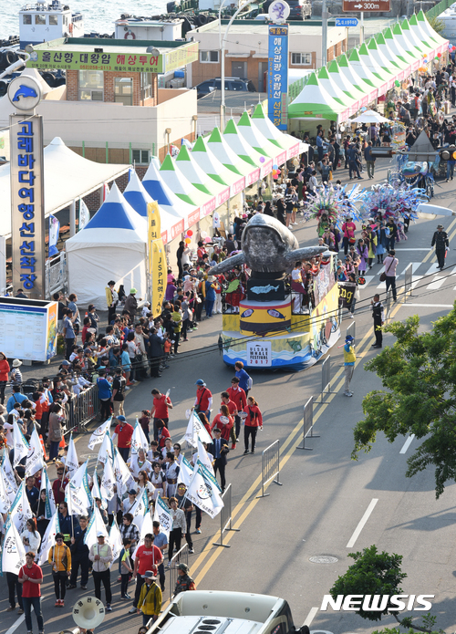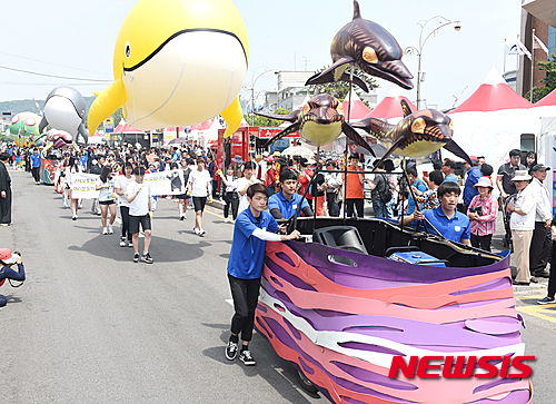 「2022蔚山クジラ祭り」が開かれている同市南区長生浦港一帯で15日、「クジラパレード」が行われた。