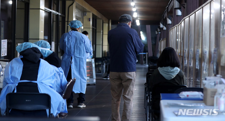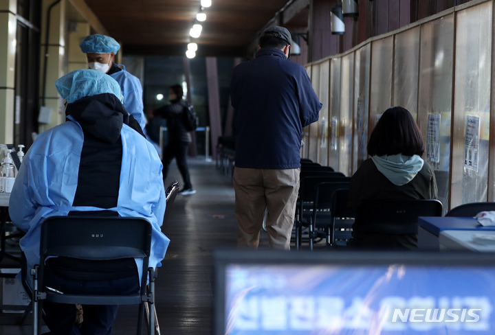 【NEWSIS】ソウルの最低気温が4℃まで下がった18日朝、ソウル市松坡区保健所の選別診療所(新型コロナウイルス検査所)には大型ストーブが設置された。