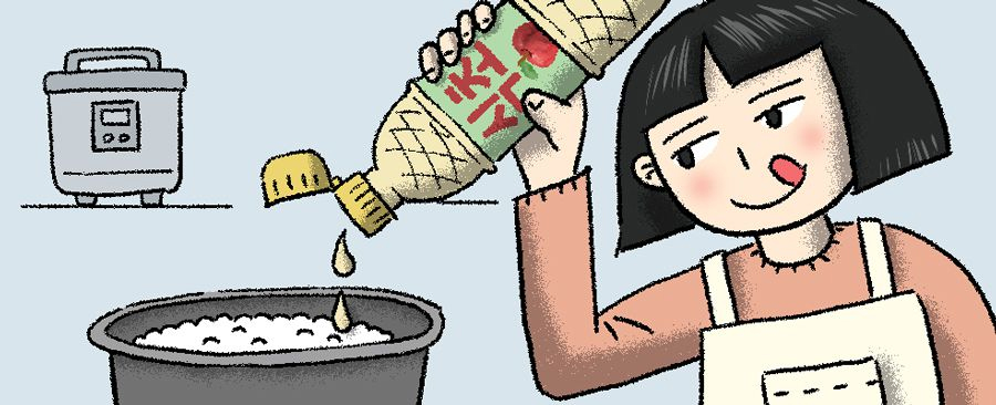 古い米でご飯を炊く時は、米をといで水につけておく段階でお酢を1-2滴入れておくと、古い米のにおいが消え、ご飯が柔らかく炊きあがる。