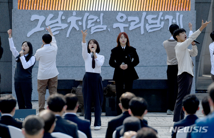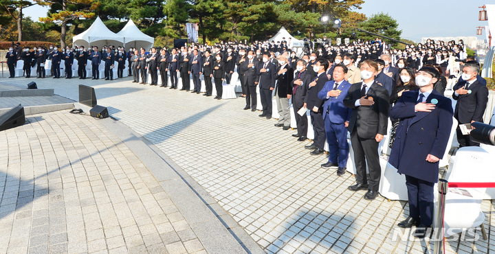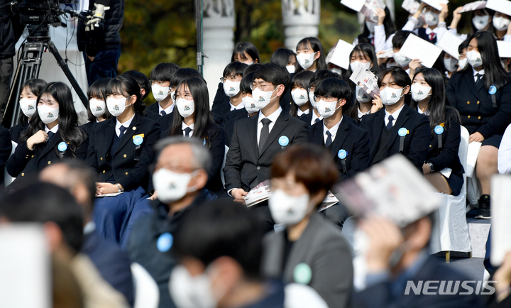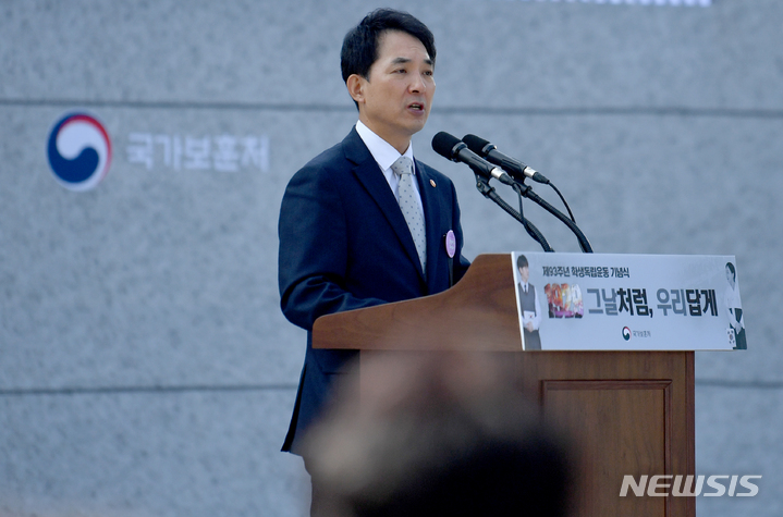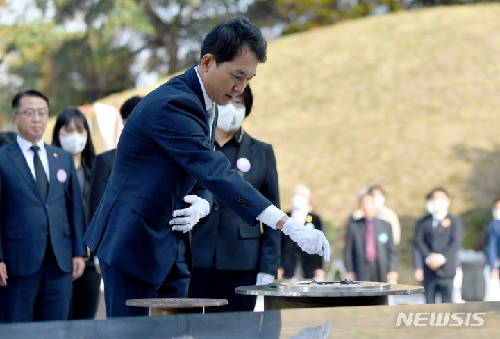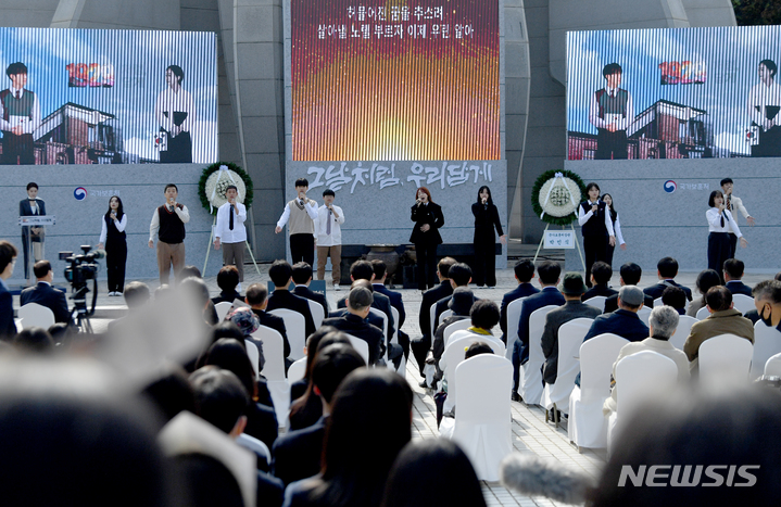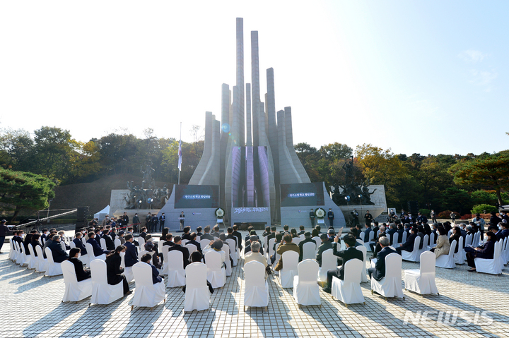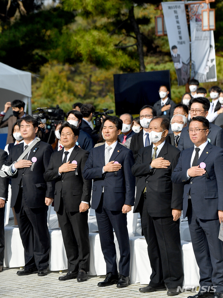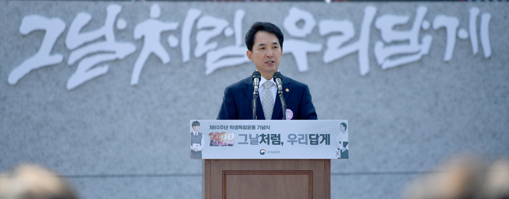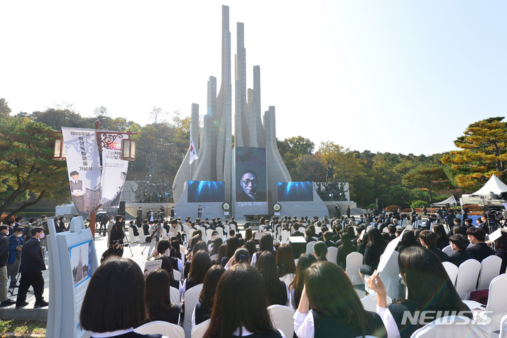 光州市西区花亭洞の学生独立運動記念塔前で3日午前、第93周年学生独立運動記念式典が開かれた。