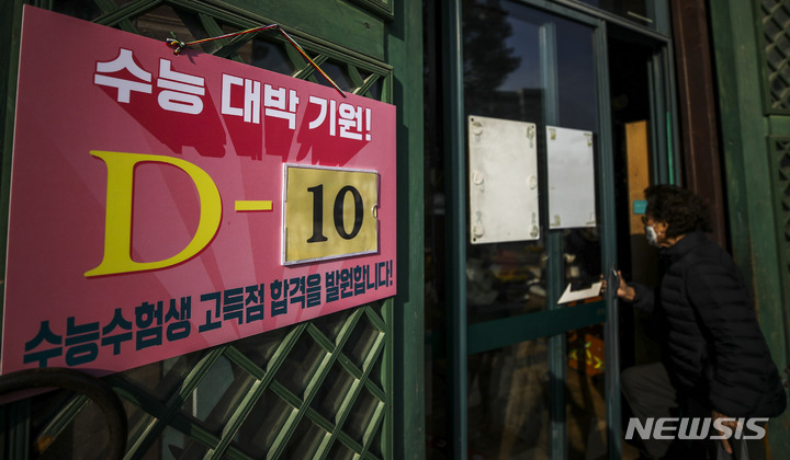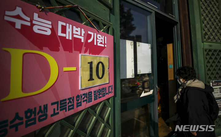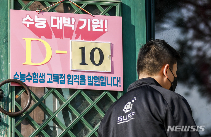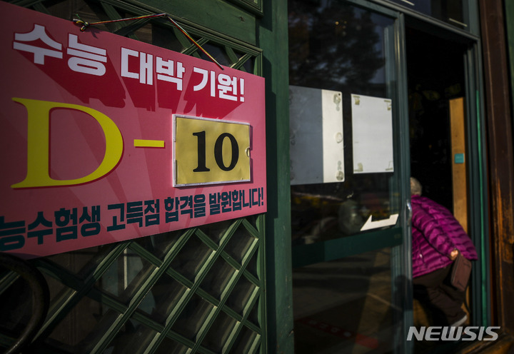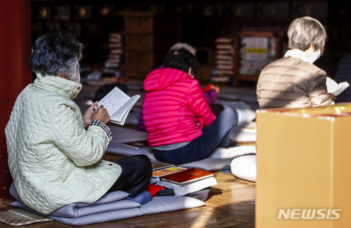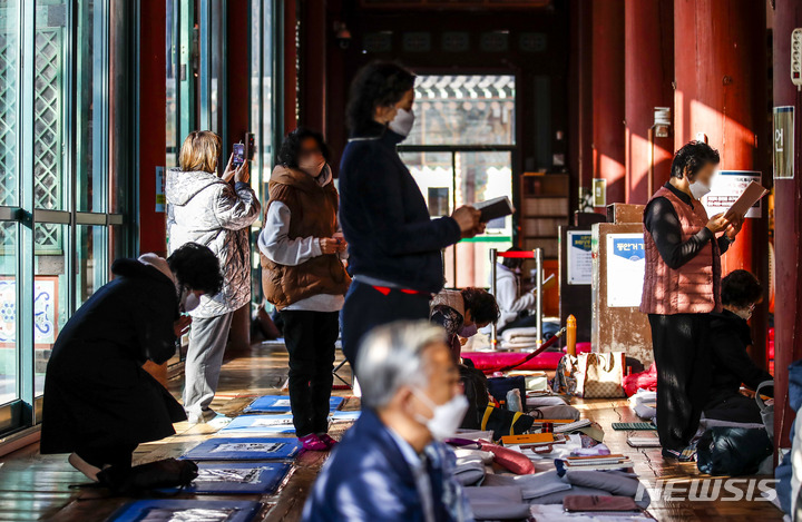 2023年度大学修学能力試験を十日後に控えた7日午前、ソウル市鍾路区の曹渓寺を訪れた仏子たちが大雄殿に移動している。