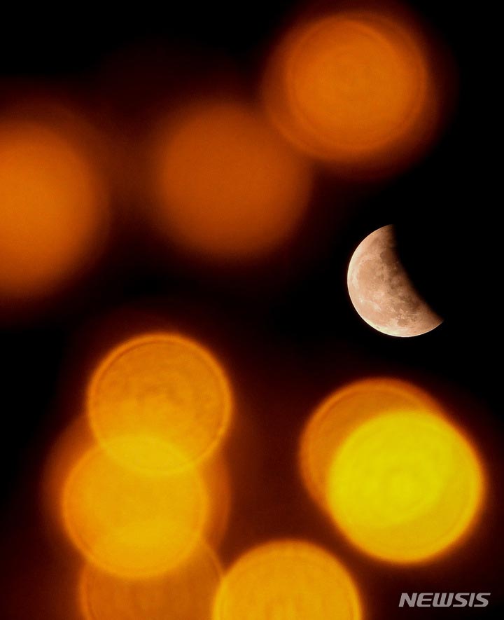 8日午後、済州市の西の空で、太陽と地球、月が一直線に並ぶことで月が地球の影に入る現象である「皆既月食」が見られた。この日夜には地球の影に隠れた月が天王星を隠す天王星食も同時に起きた。二つの天文現象が重なる宇宙ショーは、今後200年は韓国で観測することはできない。