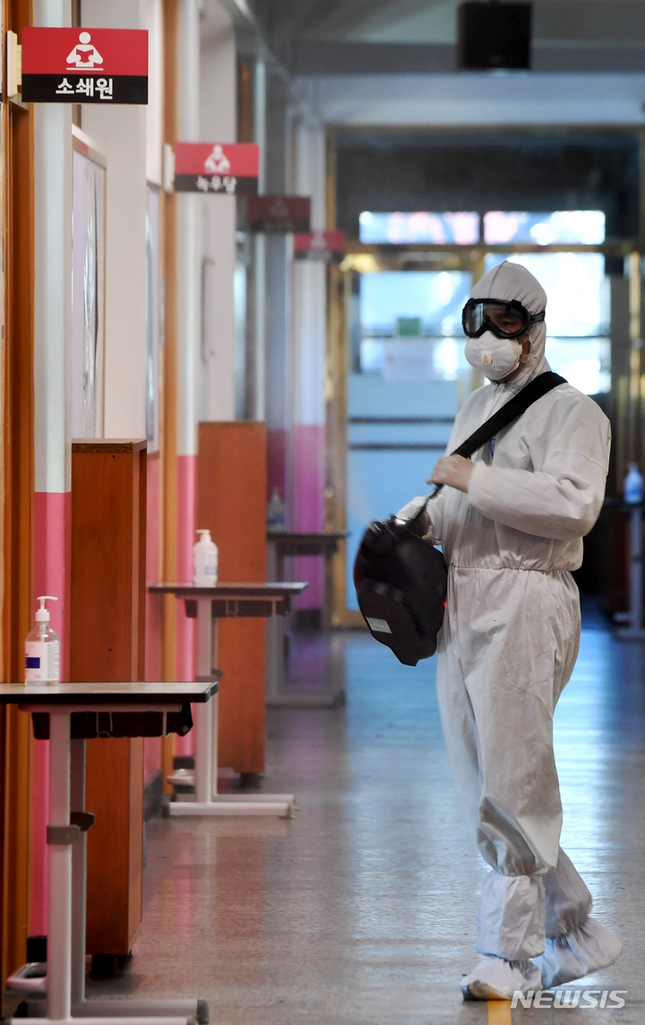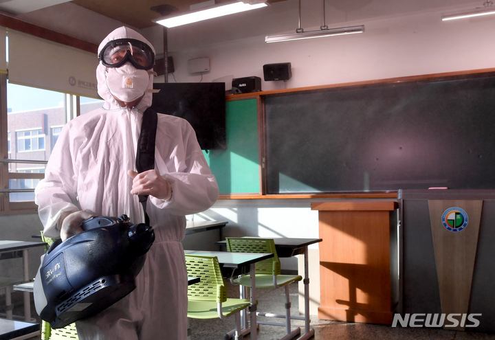 2023年度大学修学能力試験を二日後に控えた15日午前、試験会場に指定されている光州市西区の光徳高校では、特別防疫作業が実施された。
