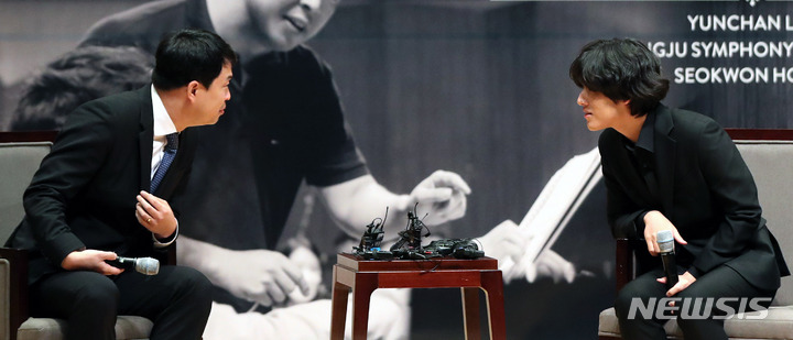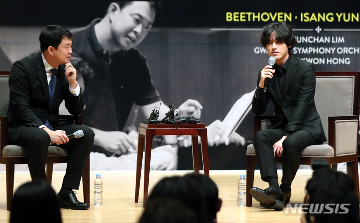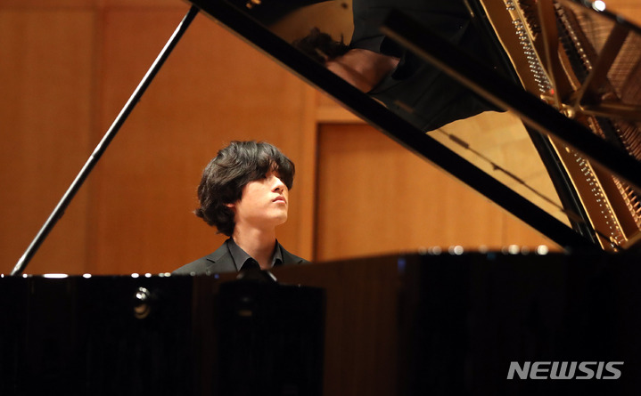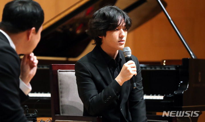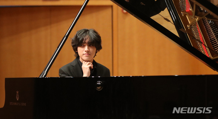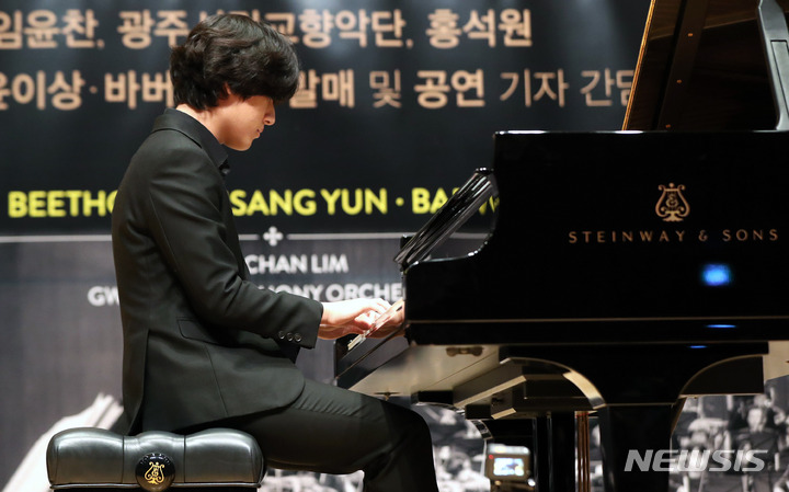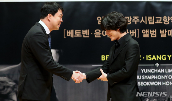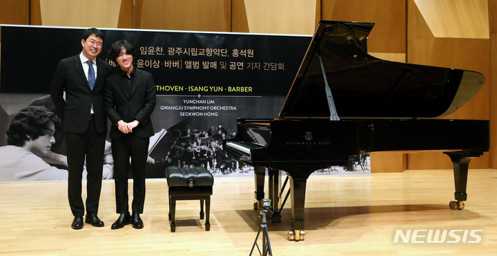 ピアニストのイム・ユンチャンが28日午前、ソウル市西大門区の錦湖アートホール延世で開かれたアルバム『ベートーベン、尹伊桑(ユン・イサン)、バーバー』のリリース記者懇談会で記念撮影に応じているところ。