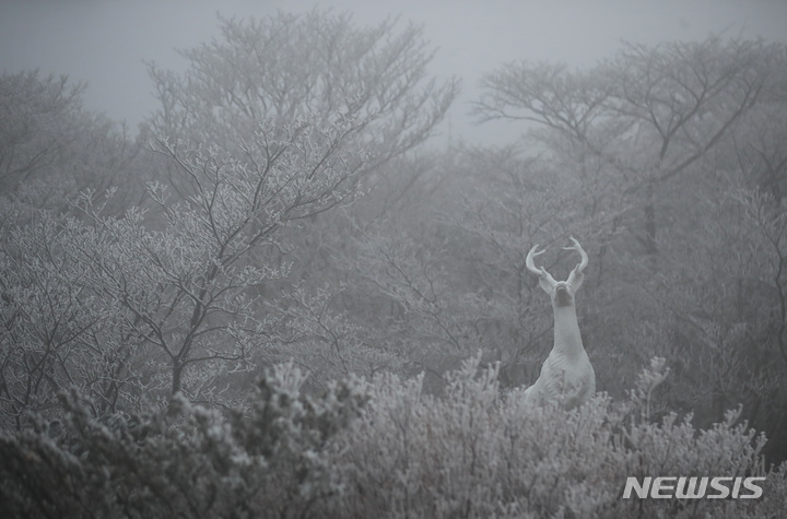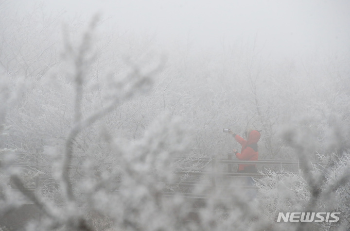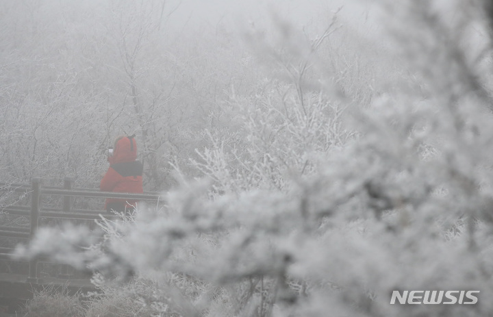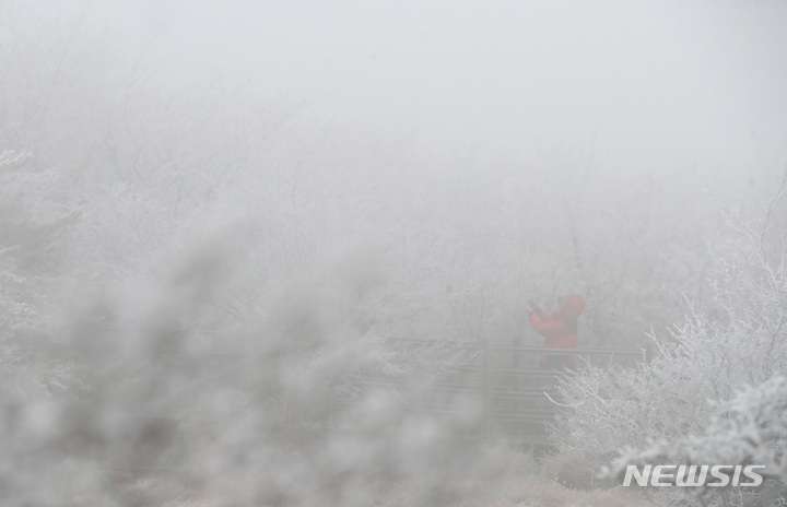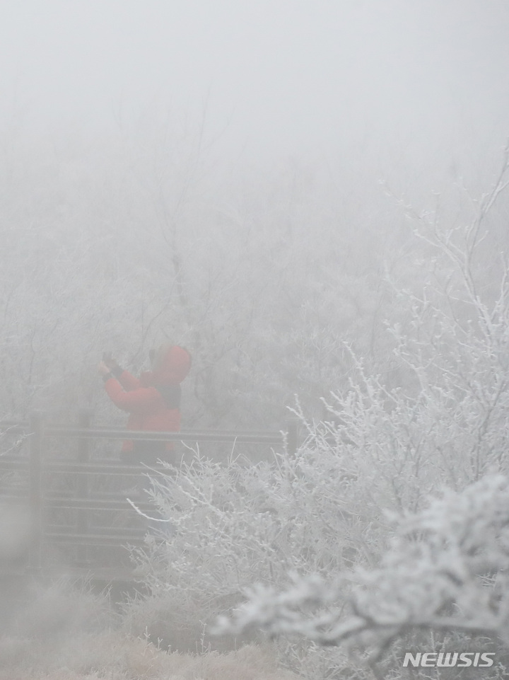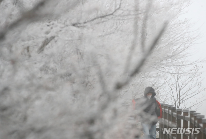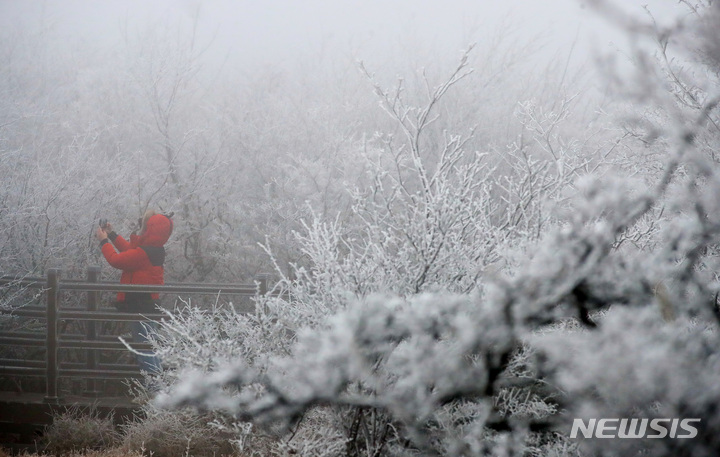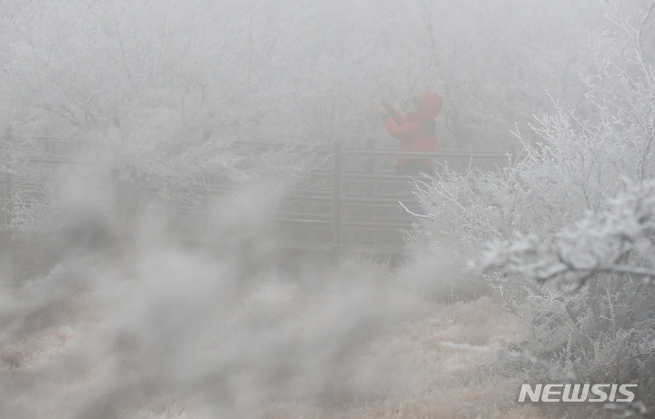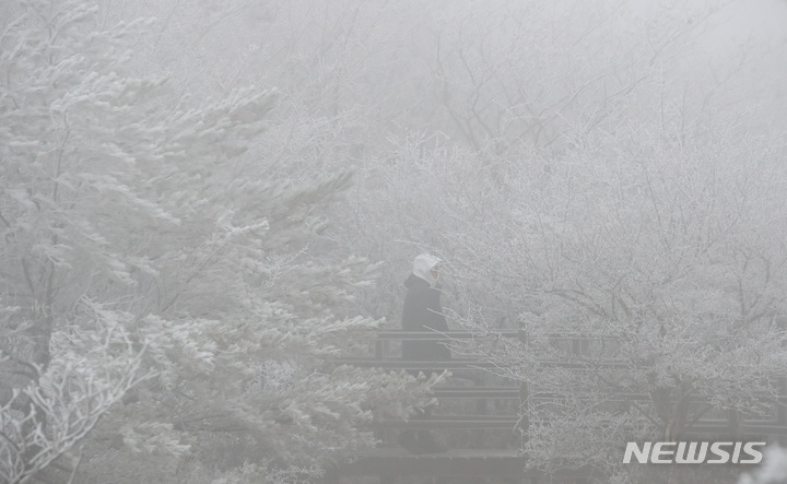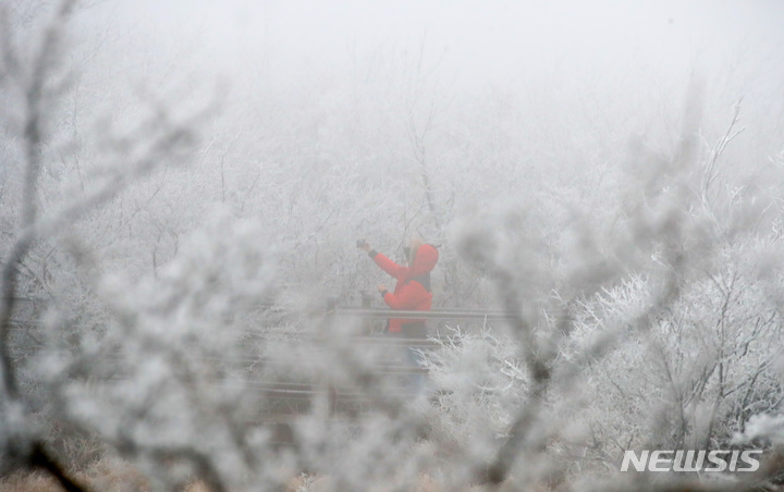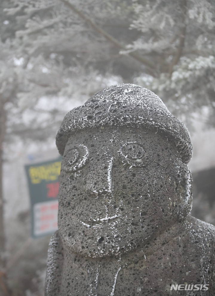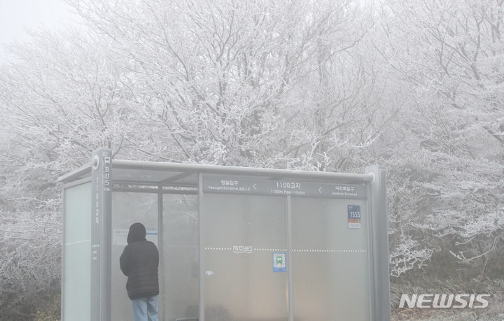 【NEWSIS】全国ほとんどの地域に寒波警報・特報が発令された30日午前、済州島の漢拏山の中腹にある「1100高地」サービスエリアで初雪が観測された。気象庁によると、今回の寒さは来月2日まで三日間ほど続くが、週末からは次第に緩むとのことだ。