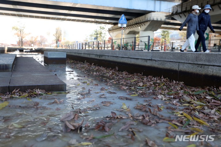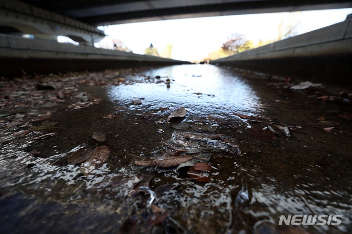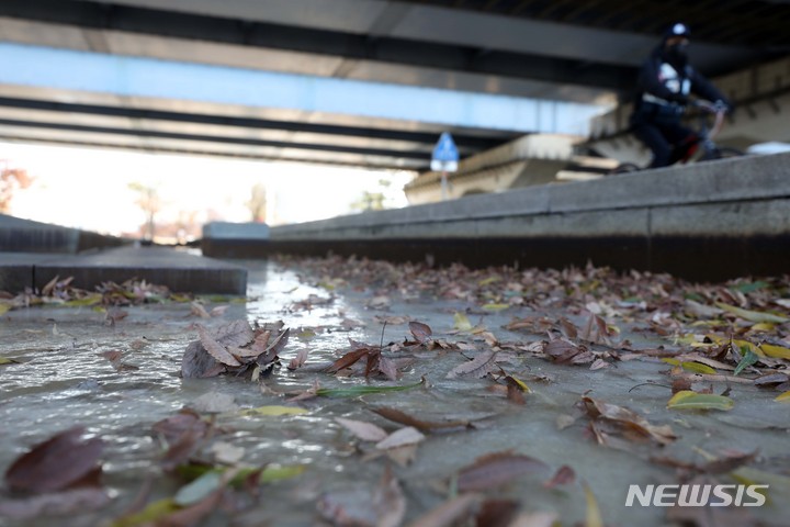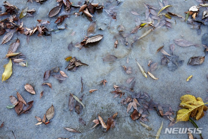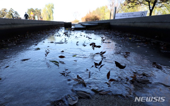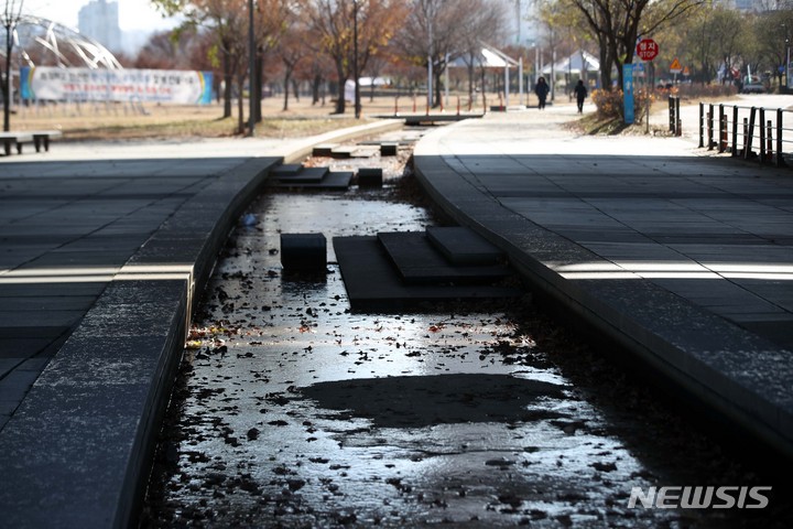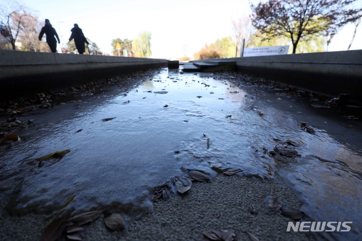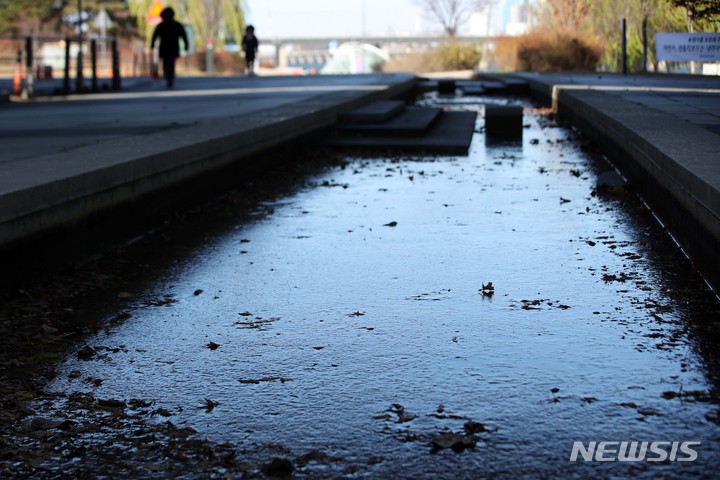 ソウルで最低気温がマイナス7度を記録した30日、汝矣島漢江公園では氷が張っていた。