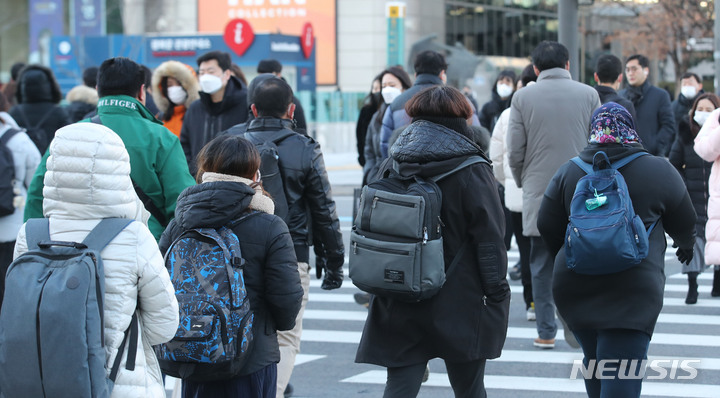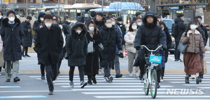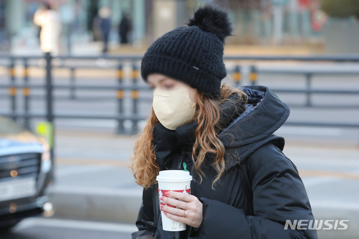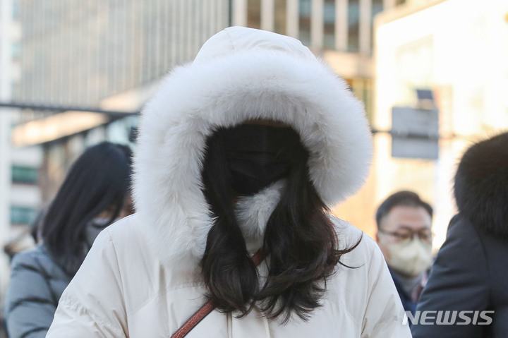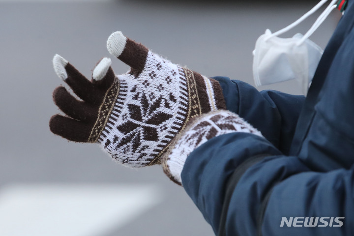 【NEWSIS】首都圏地域に寒波特報が下された1日午前、ソウル市鍾路区の光化門近くで、寒さのあまり手袋を取り出してはめる姿が見られた。