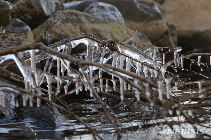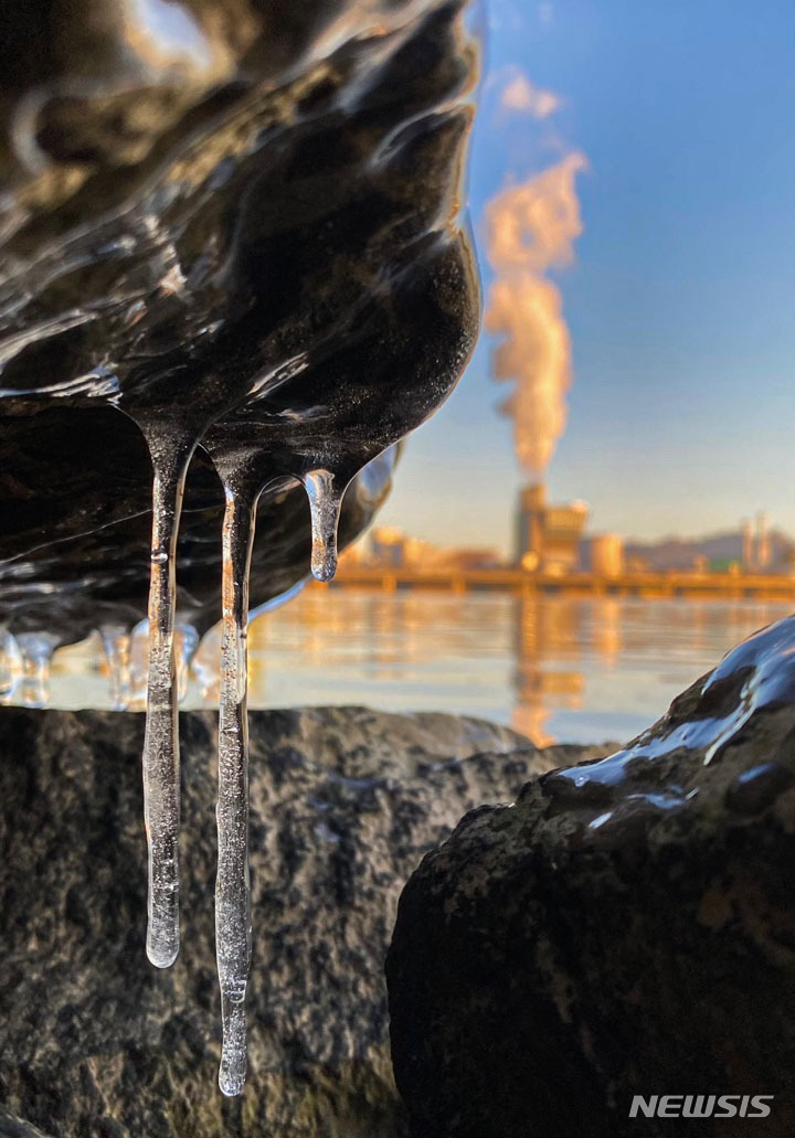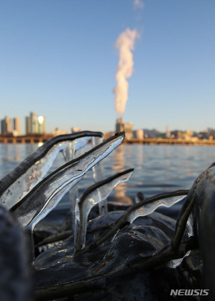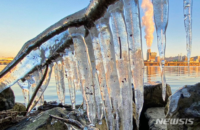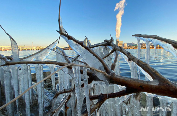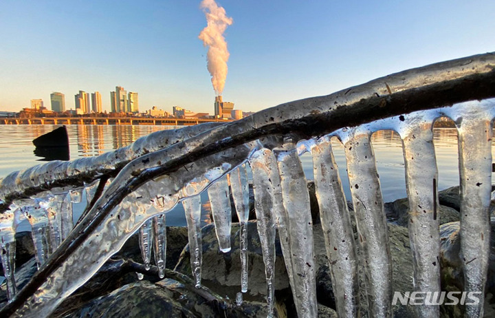 【NEWSIS】首都圏地域で寒波が続く2日午前、ソウル・汝矣島の漢江沿いにはつららができていた。