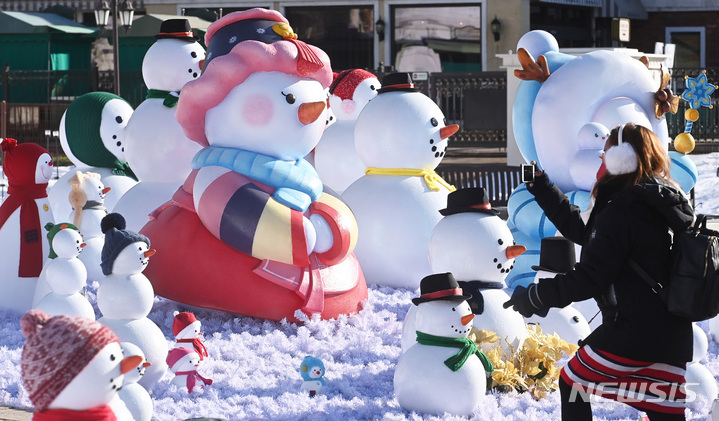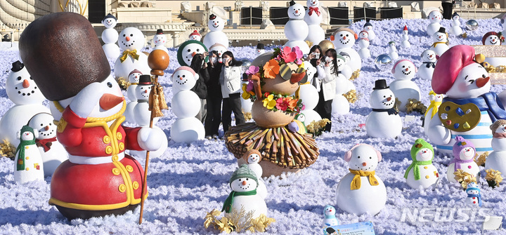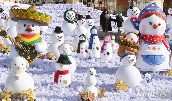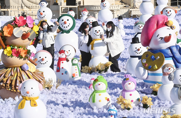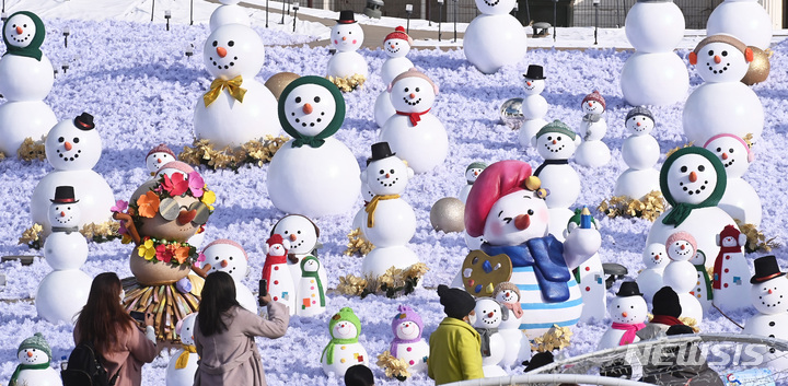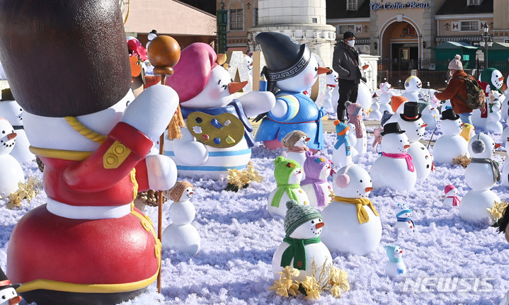 1日午後、京畿道竜仁市のエバーランドでは、フォーシーズン・ガーデンに設置された「スノーメン・ワールド」を訪れた人々が世界各国2023体の雪だるまを眺めながら冬を満喫していた。