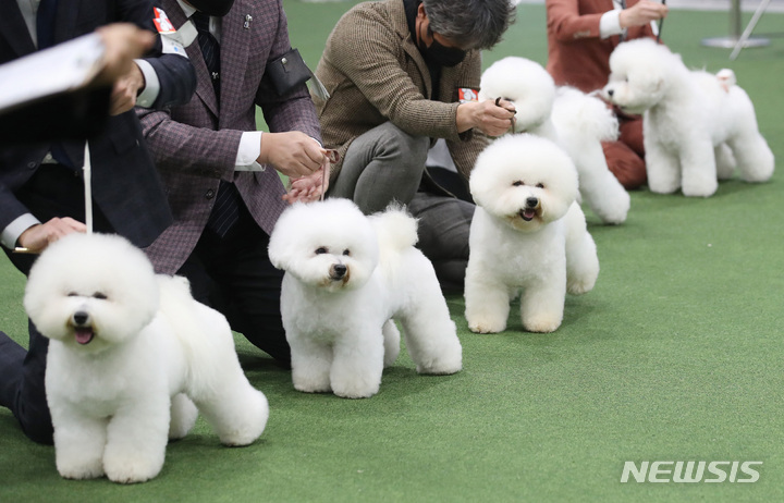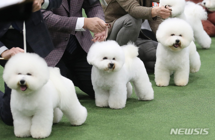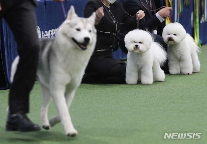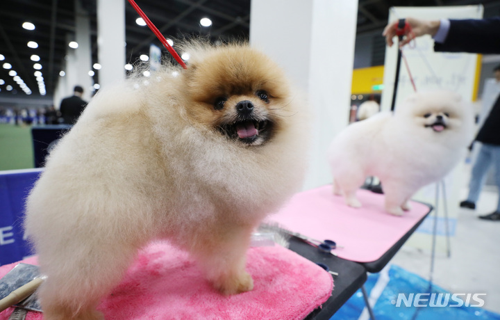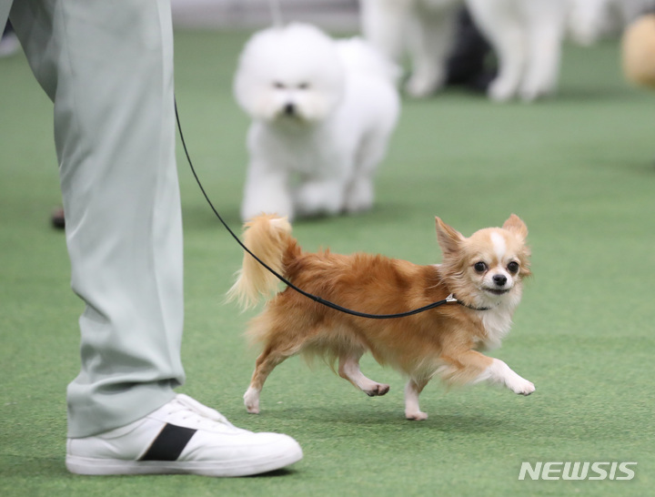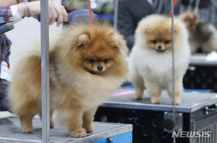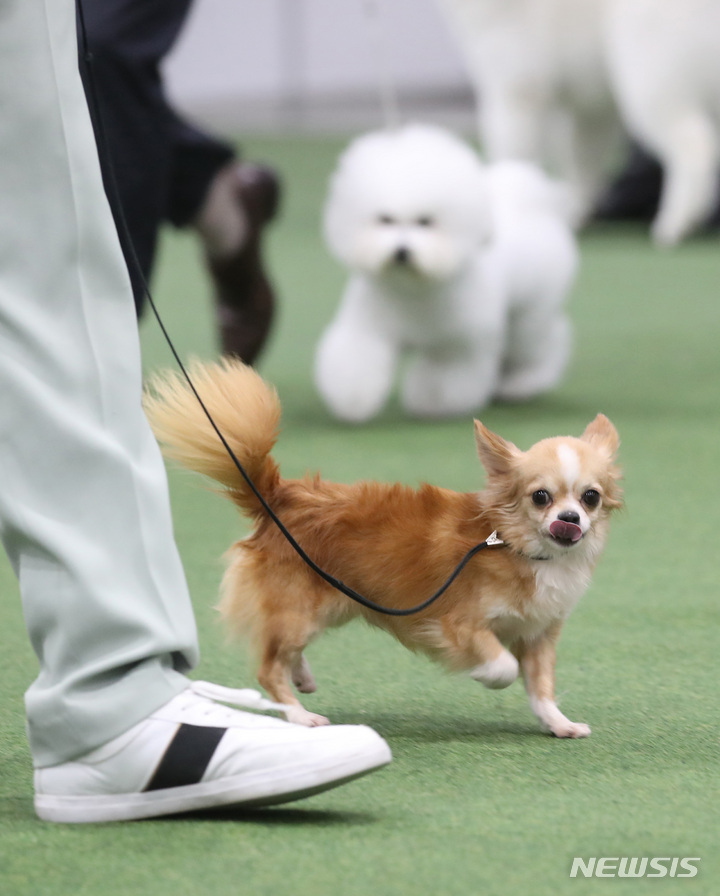 【NEWSIS】4日、ソウル市瑞草区のaTセンターで行われた「2022ソウルFCI国際ドッグショー」に出場した小犬たち。
