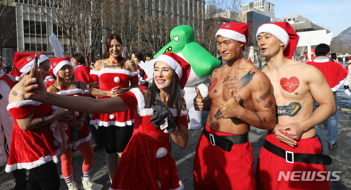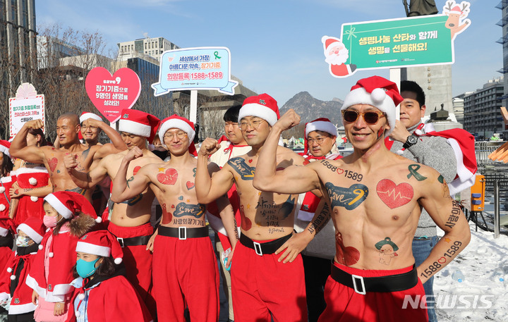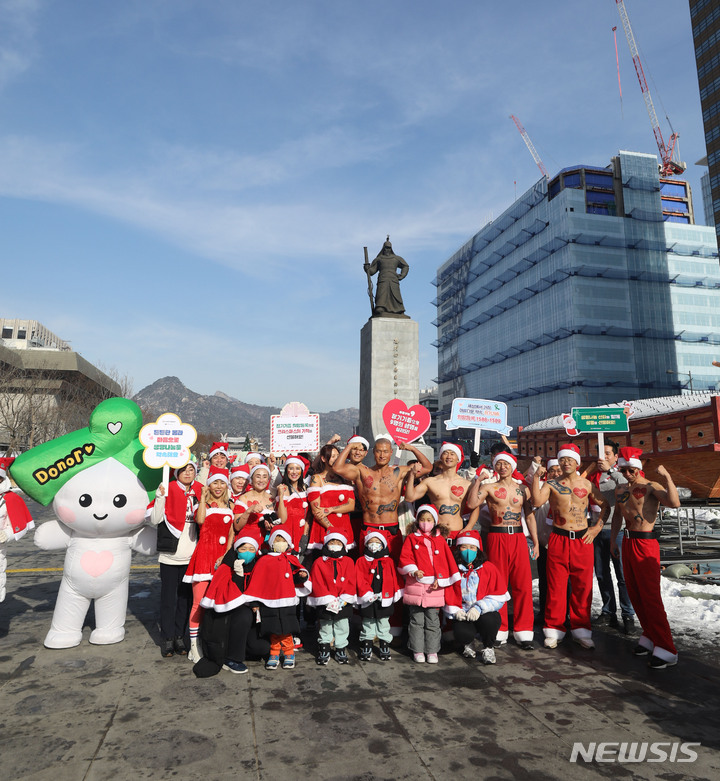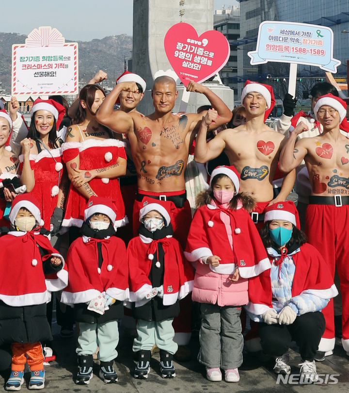 ソウル市鍾路区の光化門広場で16日午前、トレーナーらが「愛の臓器寄贈運動本部」主催の臓器寄贈キャンペーンを繰り広げている様子。