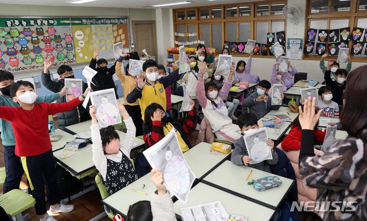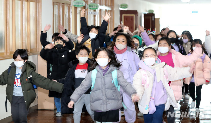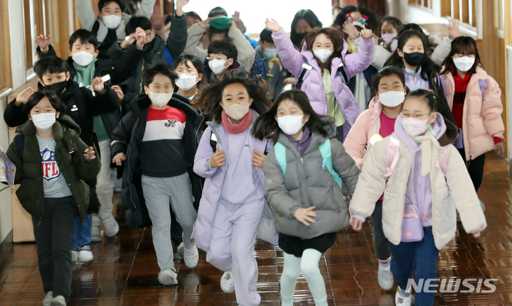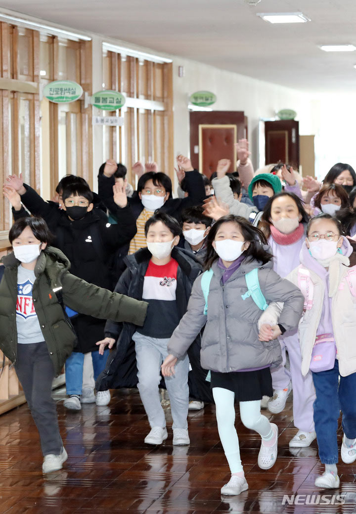2学期の終業式が行われた20日、釜山市東莱区の温泉小学校3年生の教室から明るい表情で家に帰っていく児童の様子。