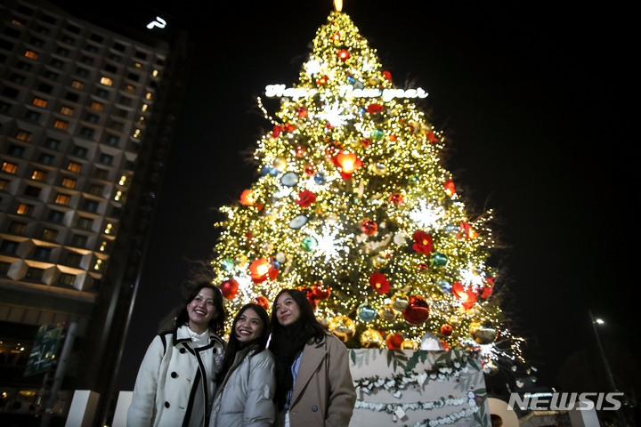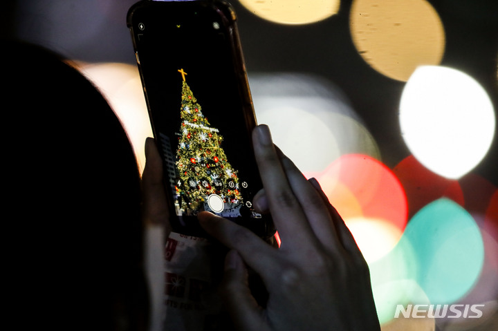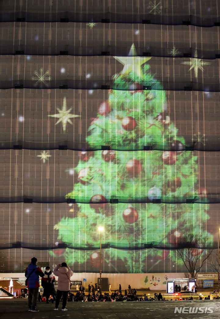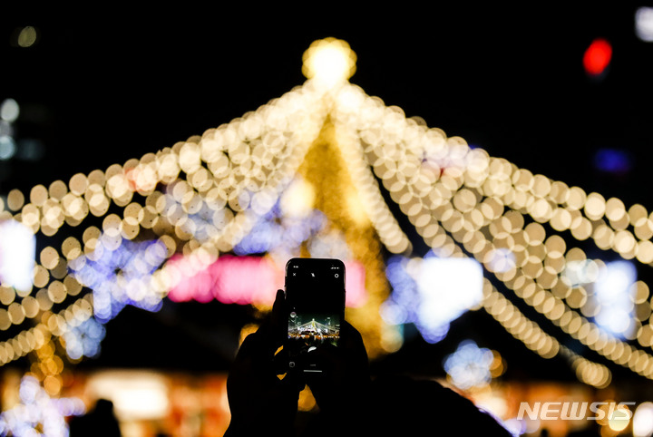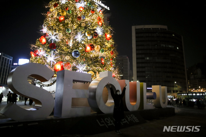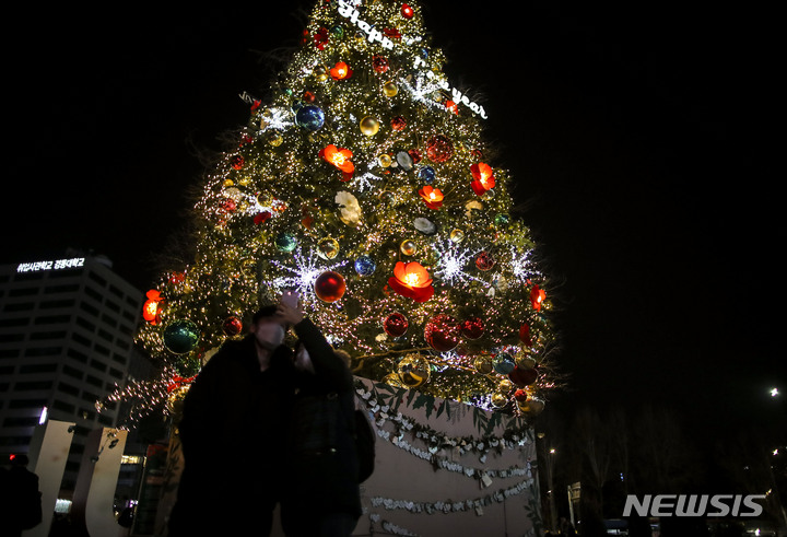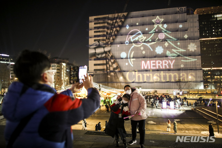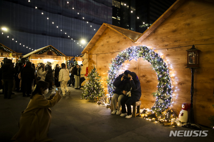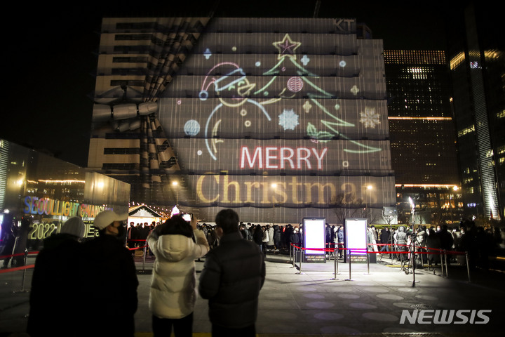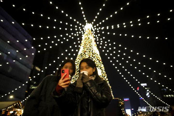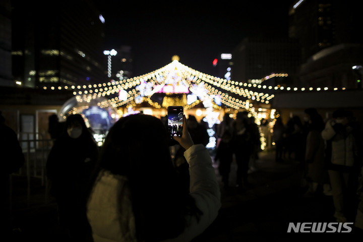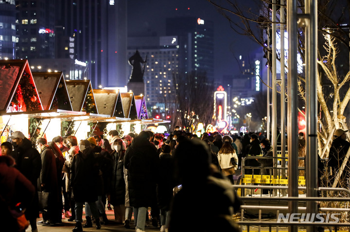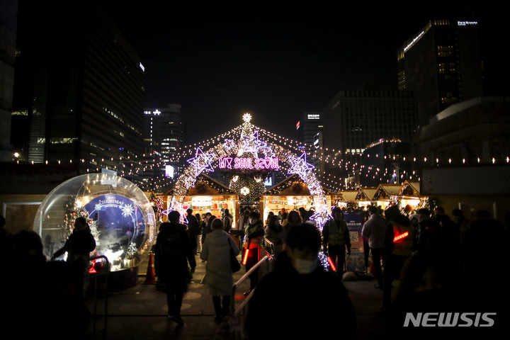 クリスマス当日の25日午後、ソウル市鍾路区の光化門広場に設けられたクリスマスマーケットを訪れた市民たちが楽しいひとときを過ごしていた。