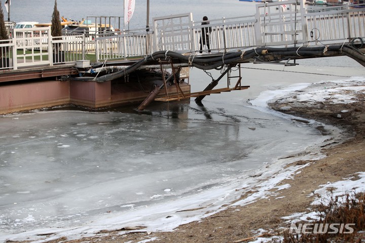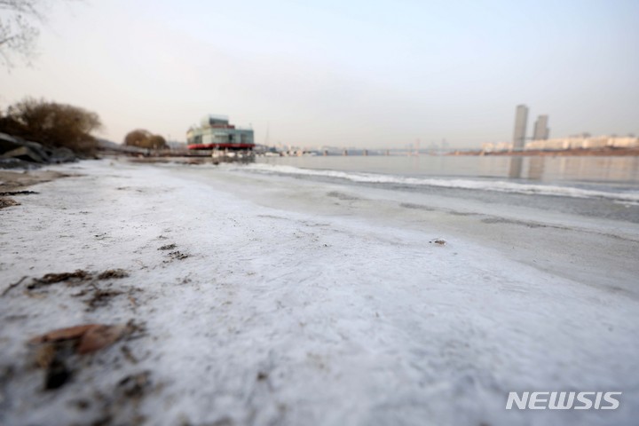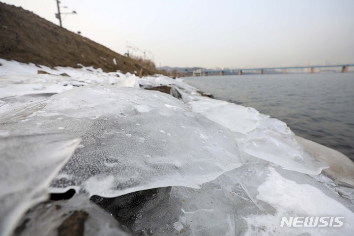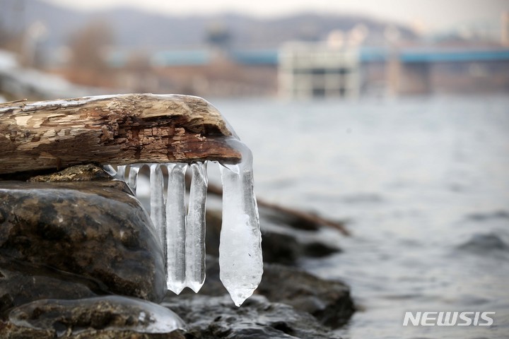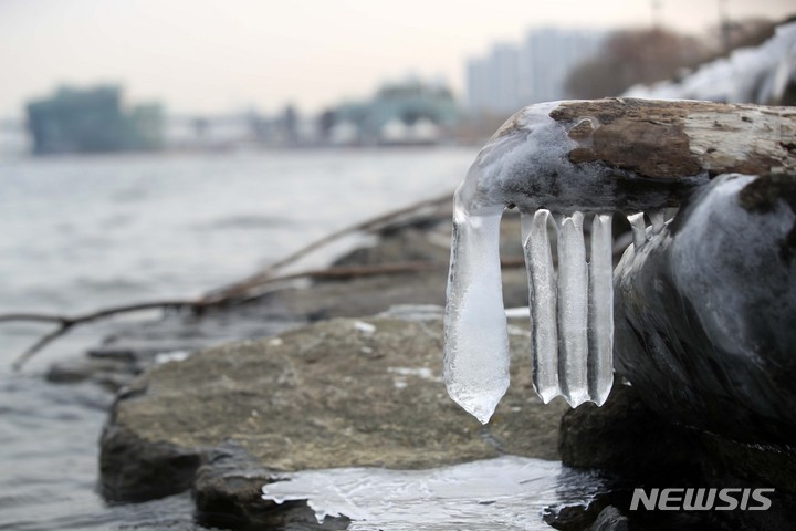 二十四節気の一つ「小寒」をあすに控えた5日、ソウル市瑞草区の盤浦漢江公園にできたつららの様子。