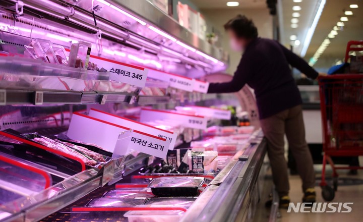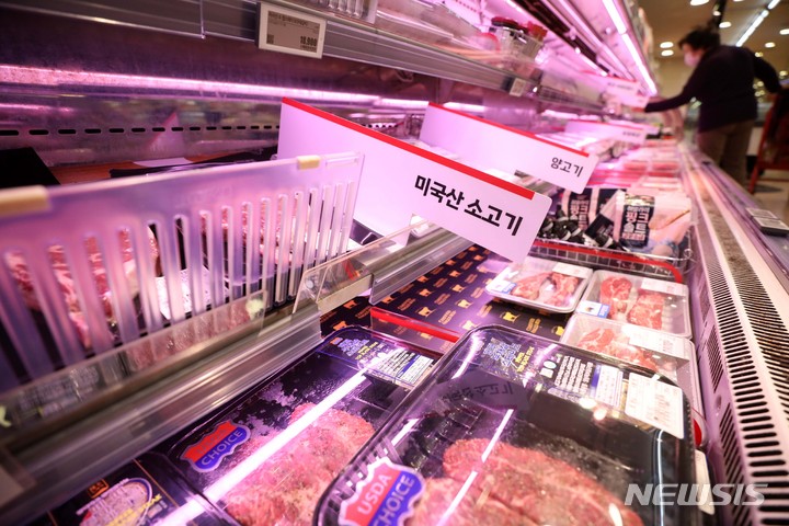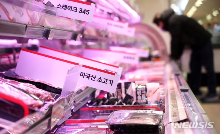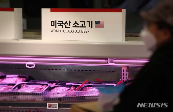 韓国が2021年に続き、2年連続で米国産牛肉の最大の輸入国だったことが分かった。米国農務省と米国食肉輸出連合会によると、昨年11月までに米国産牛肉の韓国輸出は24億5600万ドルで、中国や日本を上回っているという。写真は10日、ソウル市内の大型スーパーで販売されている米国産牛肉の様子。