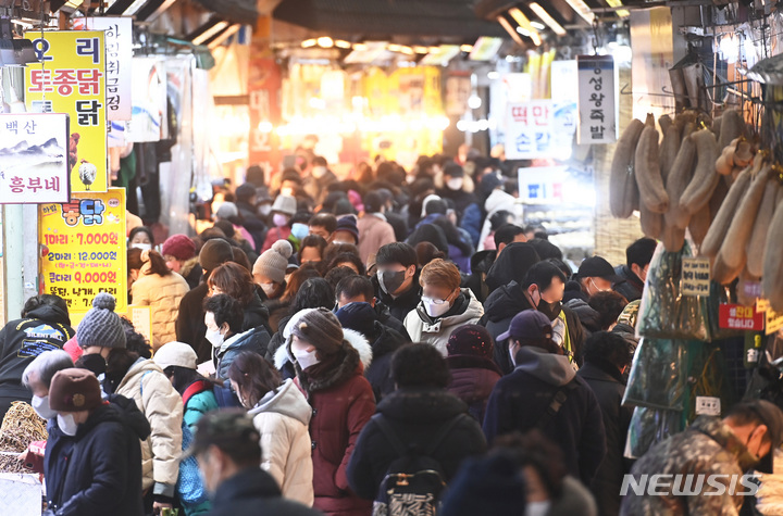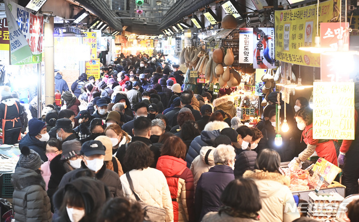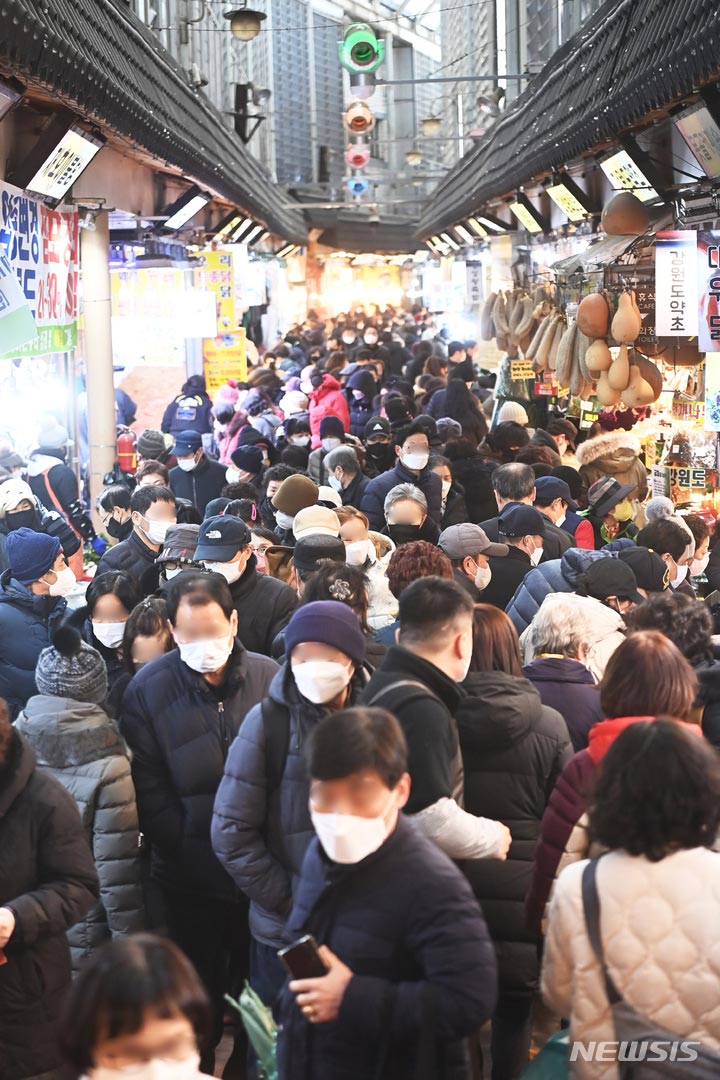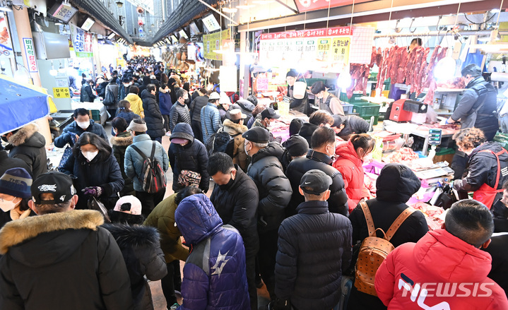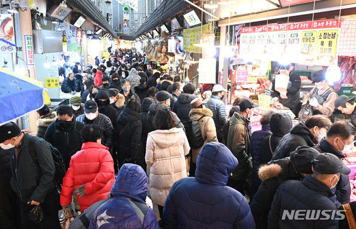 民族の大名節、旧正月(今年は1月22日)まであと二日となった20日、京畿道水原市八達区のモッコル市場は、旧正月のお膳の準備のため買い物にきた市民で混雑していた。
