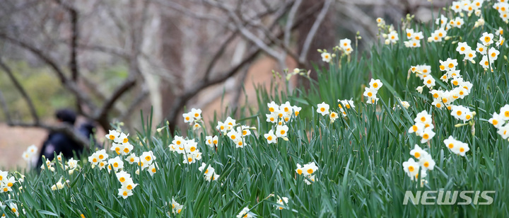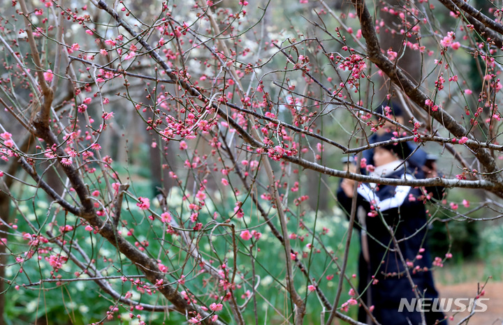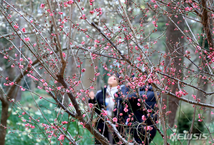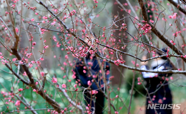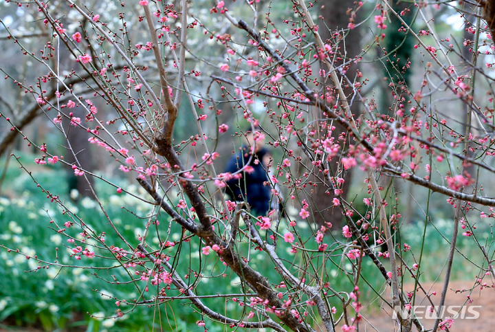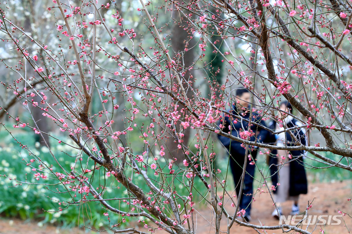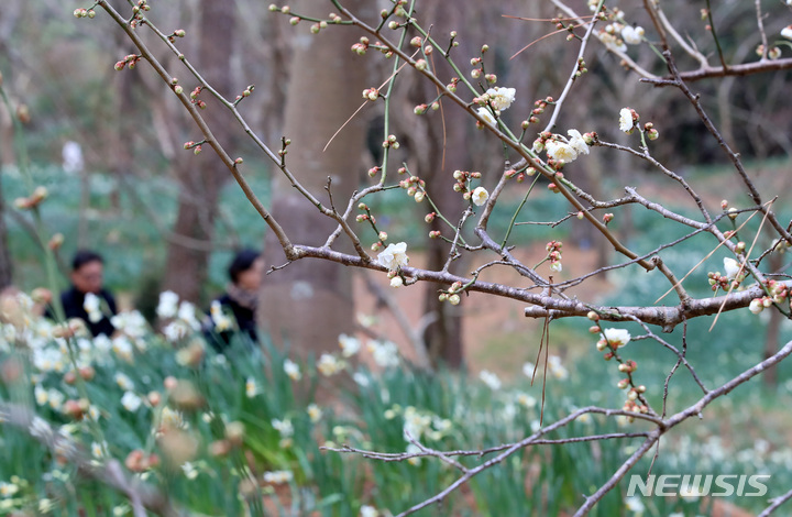 【NEWSIS】全国をカチカチに凍り付かせた寒さが一休みした29日午後、済州市内の翰林公園に紅梅と水仙の花が咲いていた。いつの間にか春がすぐそこまで来ているようだ。