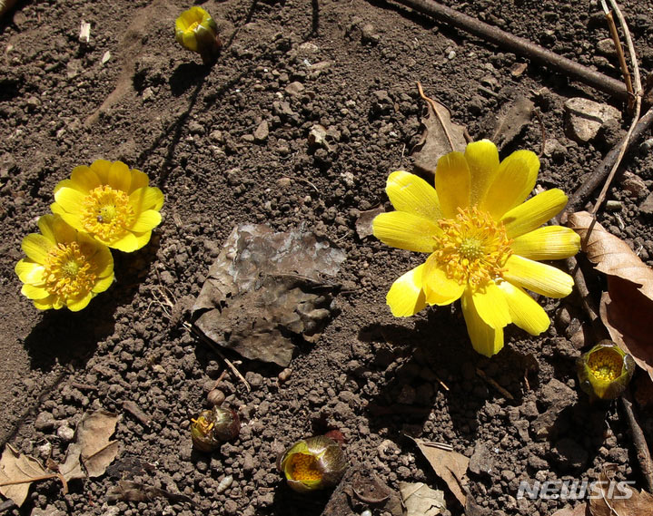 今冬の寒さは春が来ないかのように厳しかった。節気の上では春が始まる「立春」まであと四日となった31日、江原道東海市の郊外では、雪と氷を貫いて開花するフクジュソウが黄色い花を咲かせていた。フクジュソウは厳しい冬を耐え抜いて咲き、春が来たことを告げる伝令使と呼ばれる。花言葉は「幸せを招く」「永久の幸福」。