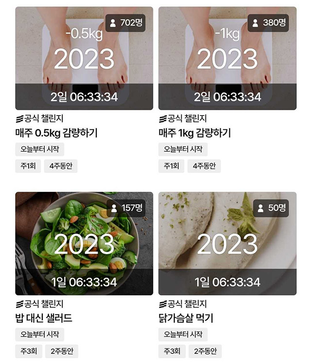 チャレンジャーズは、新年の目標に関するこのようなアンケート調査を基に、今年初めに挑戦することができるさまざまな新年の誓いチャレンジをオープンし、極端な食事制限や運動よりは▲毎週0.5キロ減量する▲ご飯の代わりにサラダを食べる▲たんぱく質シェイクを飲むなど、健康的なダイエット・チャレンジが人気を集めていると発表した。