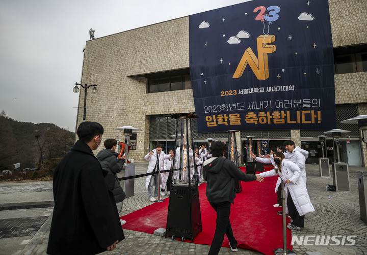ソウル市冠岳区のソウル大学で13日、2023年度新入生オリエンテーションが行われ、新入生たちが先輩たちから歓迎を受けた。