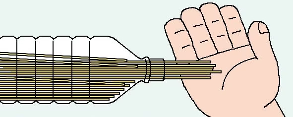 スパゲティを保存する時は、空のペットボトルに入れておくと、一定量を取り出しやすくなる。500ウォン硬貨と同じ大きさのペットボトルの口からちょうど出てくる分量のスパゲティを取り出せば、約1人前になる。