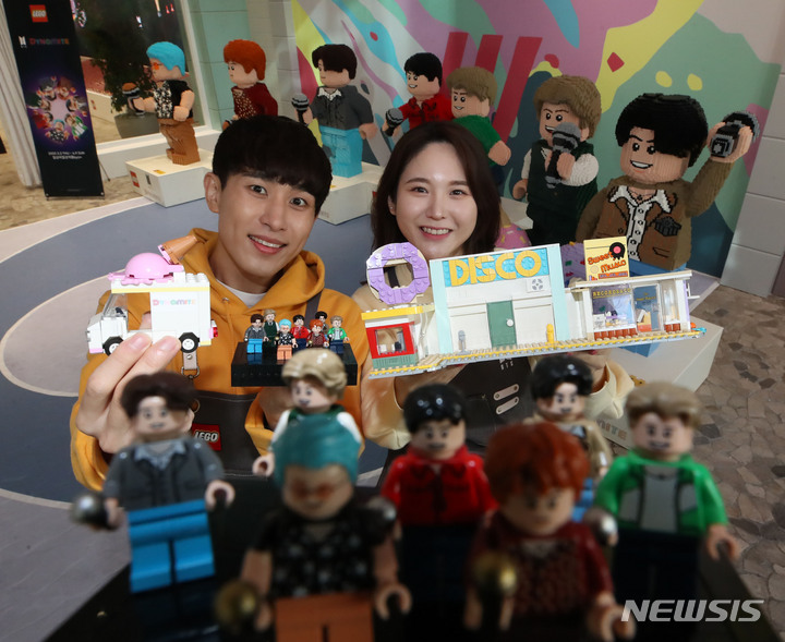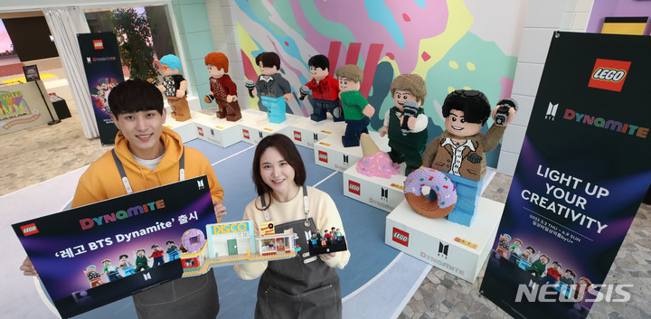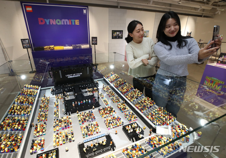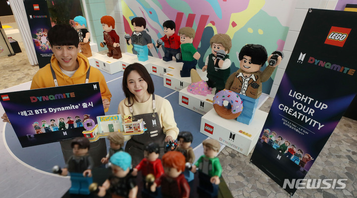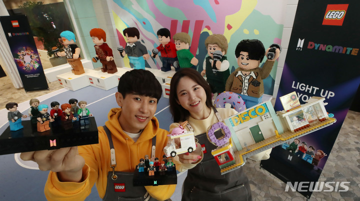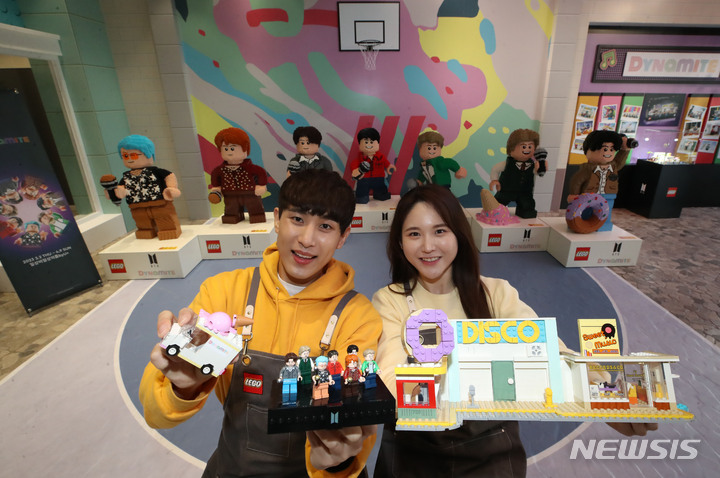 ソウル市江南区の複合文化空間「日常非日常の間byU+」で2日午前、レゴ・コリアによる「レゴBTS(防弾少年団)Dynamite」セット発売記念ポップアップストア・オープン・イベントが行われ、コンパニオンらが商品や空間を紹介した。レゴ・コリアはこの日から来月9日まで、防弾少年団の大ヒット曲「Dynamite」のミュージックビデオをテーマにしたポップアップストアを運営し、新商品の展示および販売を行う。
