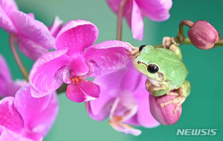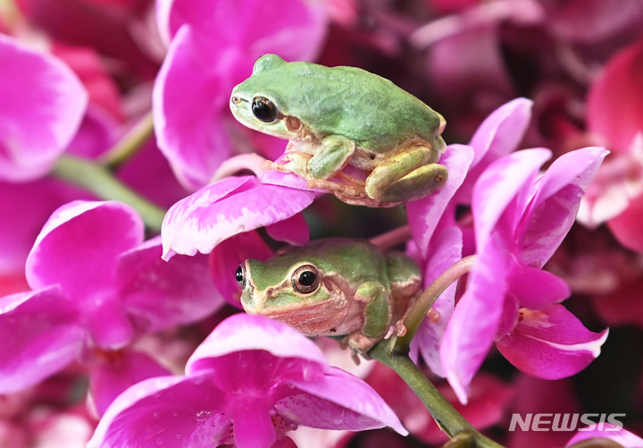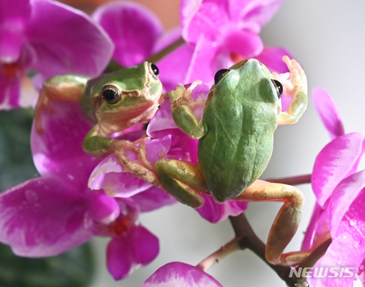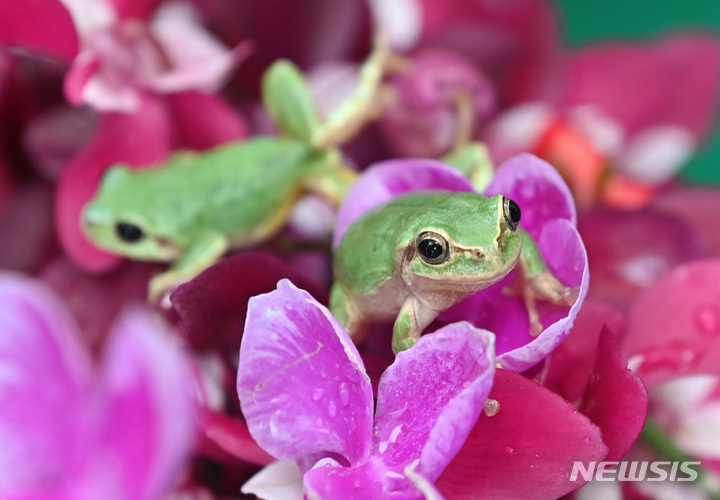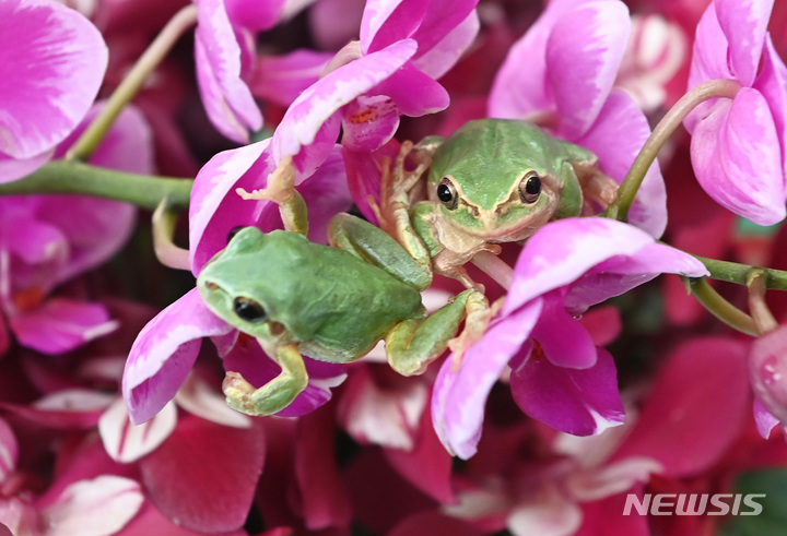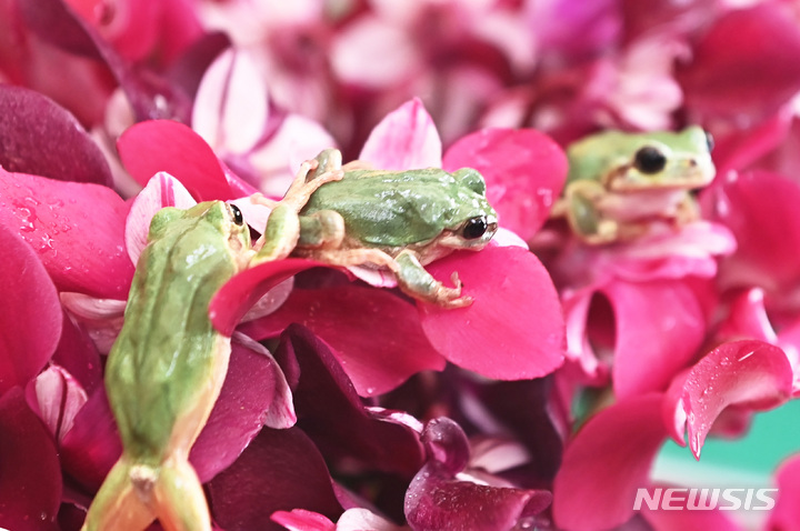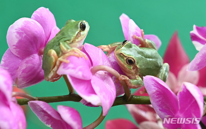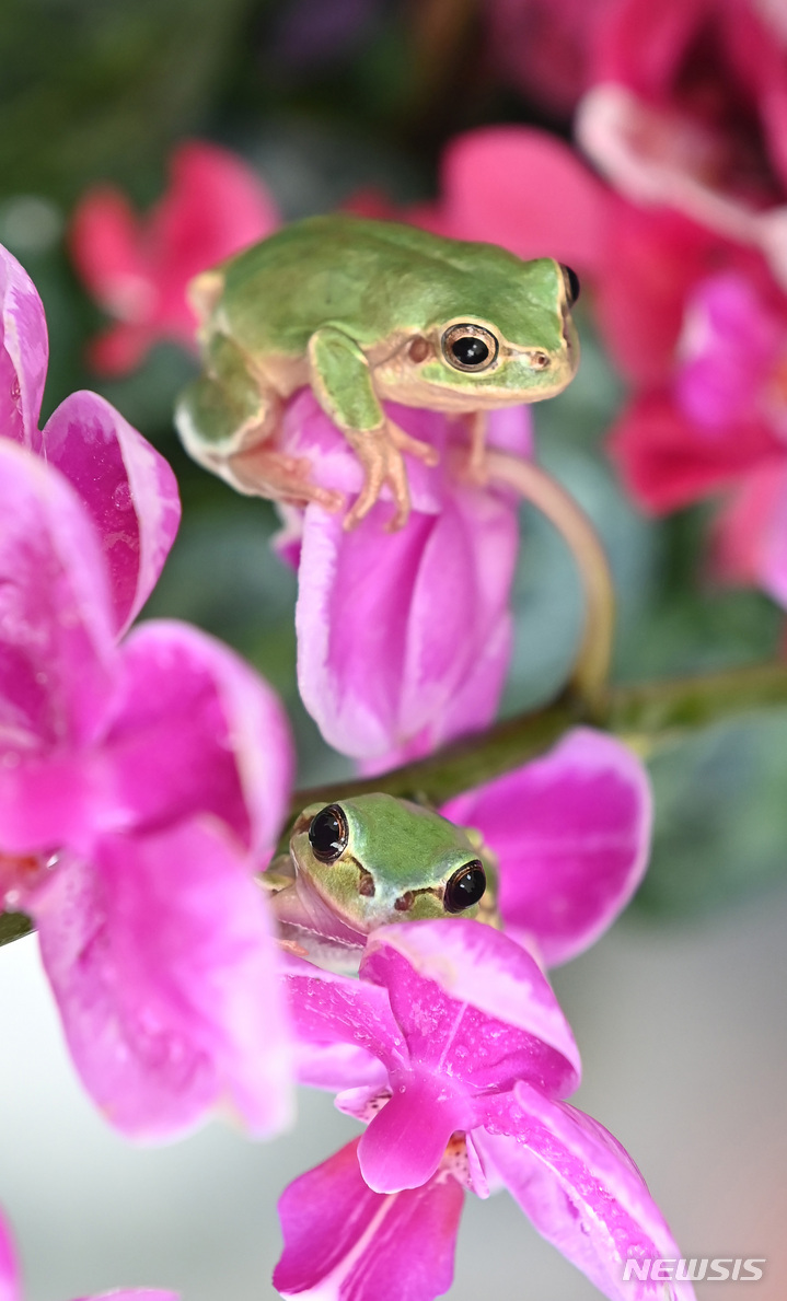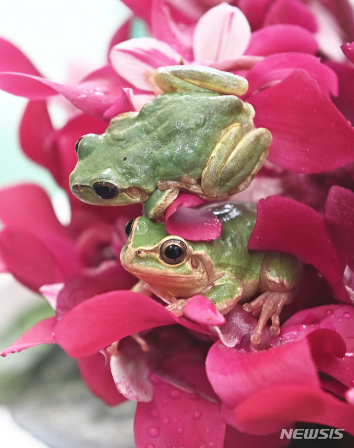 二十四節気の一つ「啓蟄(けいちつ)」まであと四日と迫った2日午後、京畿道農業技術院(京畿道華城市機山洞)の昆虫資源センターでは、カエルがさわやかに咲いた春の花の上に座っていた。