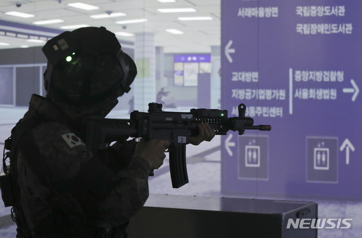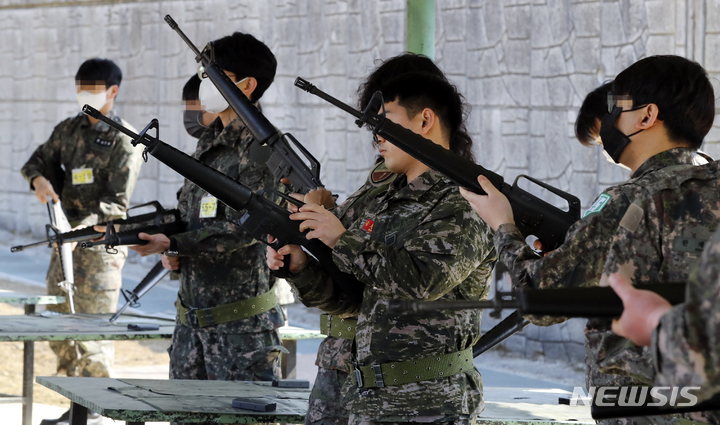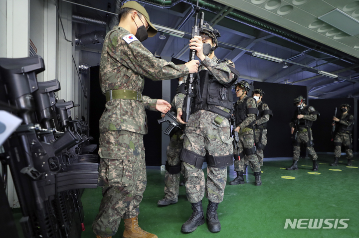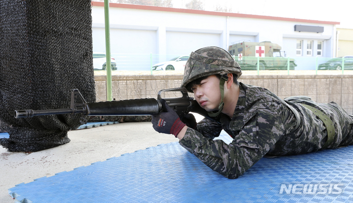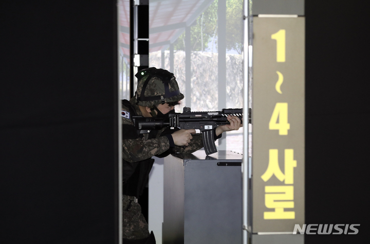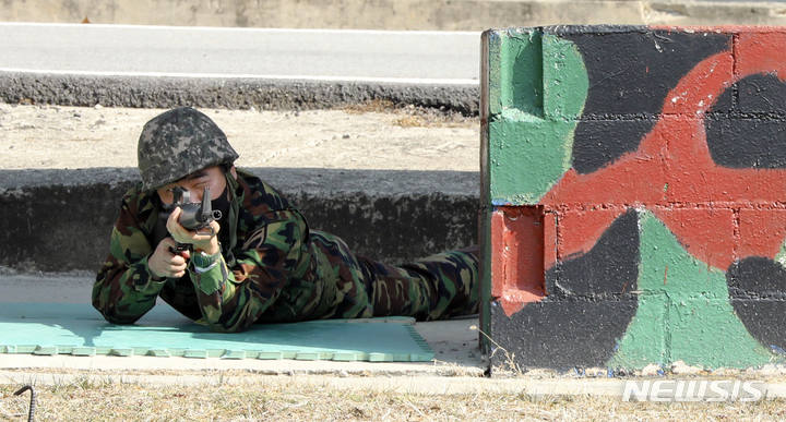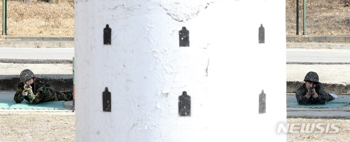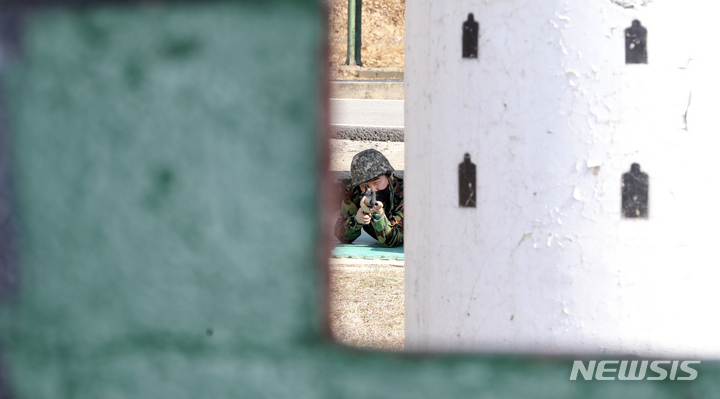 新型コロナで中断していた韓国軍の予備役軍人訓練が4年ぶりに正常化した6日、光州市北区の予備軍訓練場で、予備役軍人らが実射撃訓練を行っているところ。