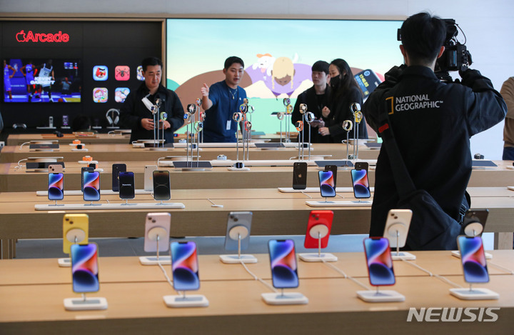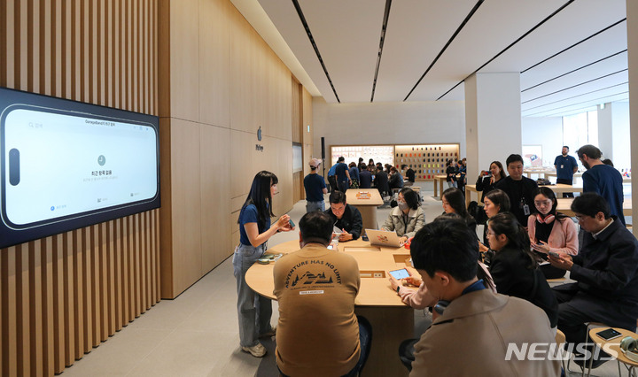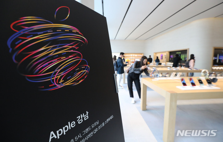 【NEWSIS】29日午前、ソウル市江南区の「Apple Store(アップルストア)江南店」で、メディア・プレビュー・イベントが開催された。今回オープンする「Apple Store江南店」は「Apple Store蚕室店」に続く韓国で5番目のApple Storeで、31日に正式にオープンする。