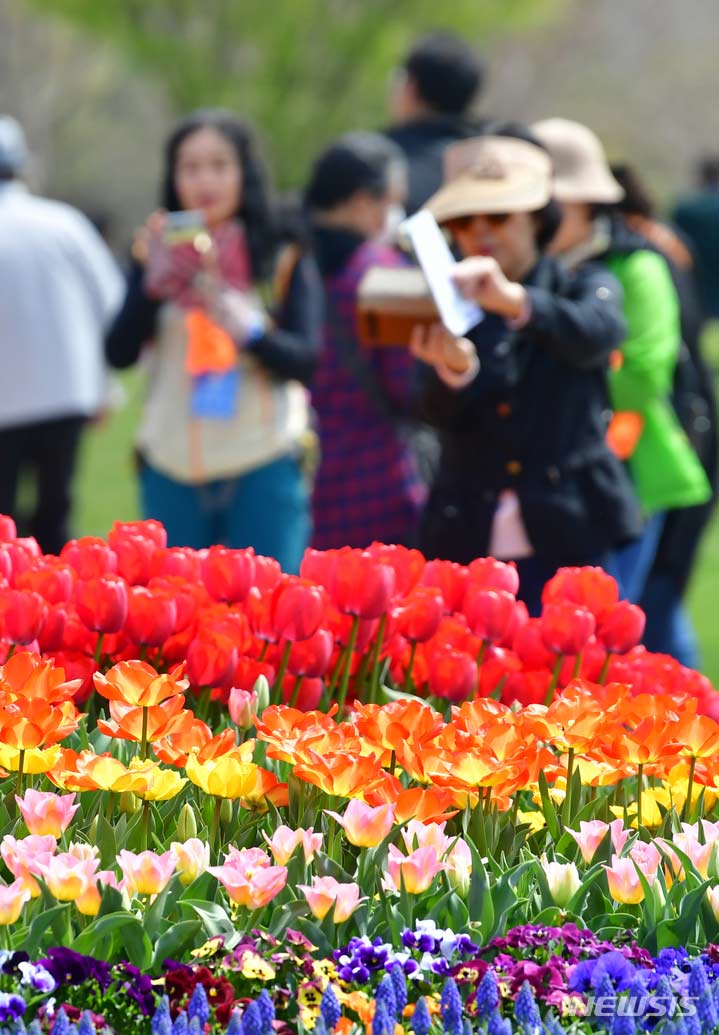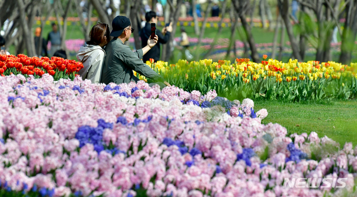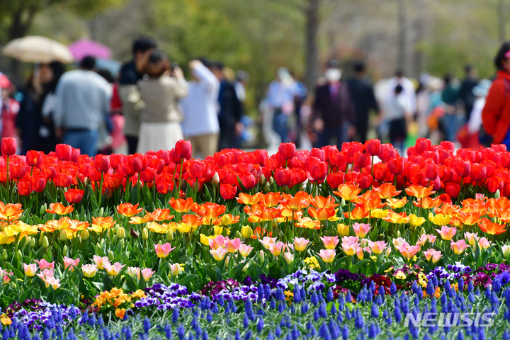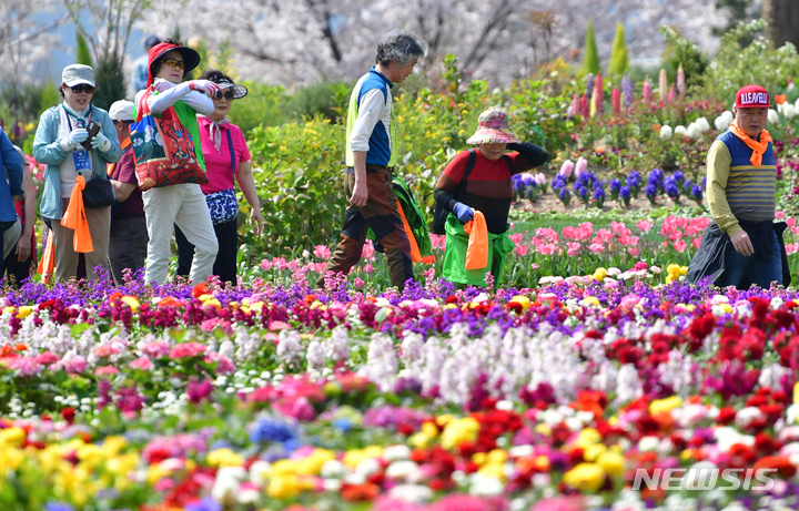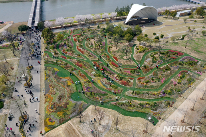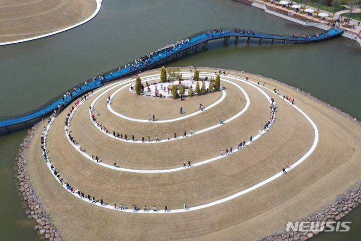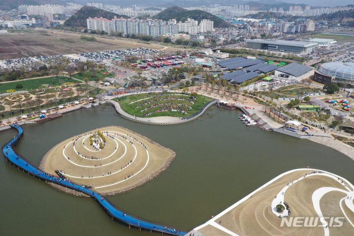 2023順天湾国際庭園博覧会(全羅南道順天市)オープン初日の1日午後、訪れた人々で混雑する会場の様子。
