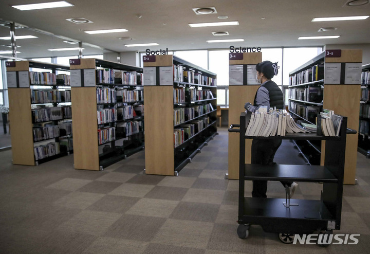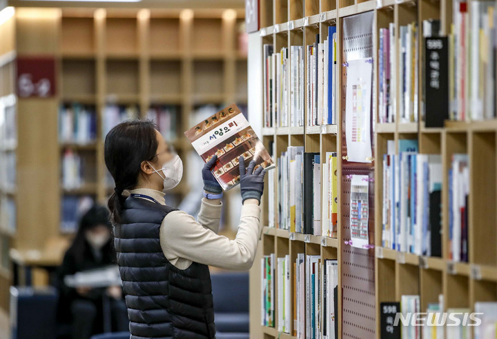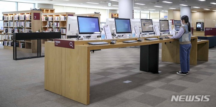 「図書館の日」に当たる12日午後、ソウル市瑞草区の国立中央図書館を訪れて資料室を利用する市民の様子。