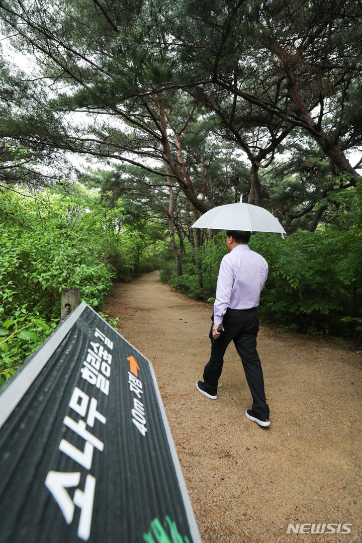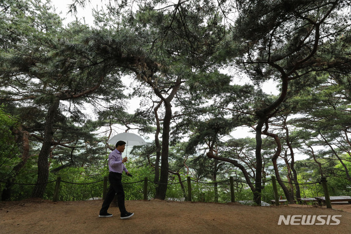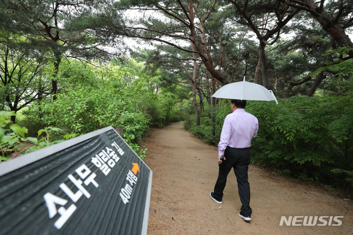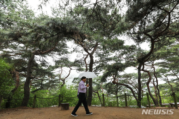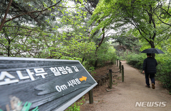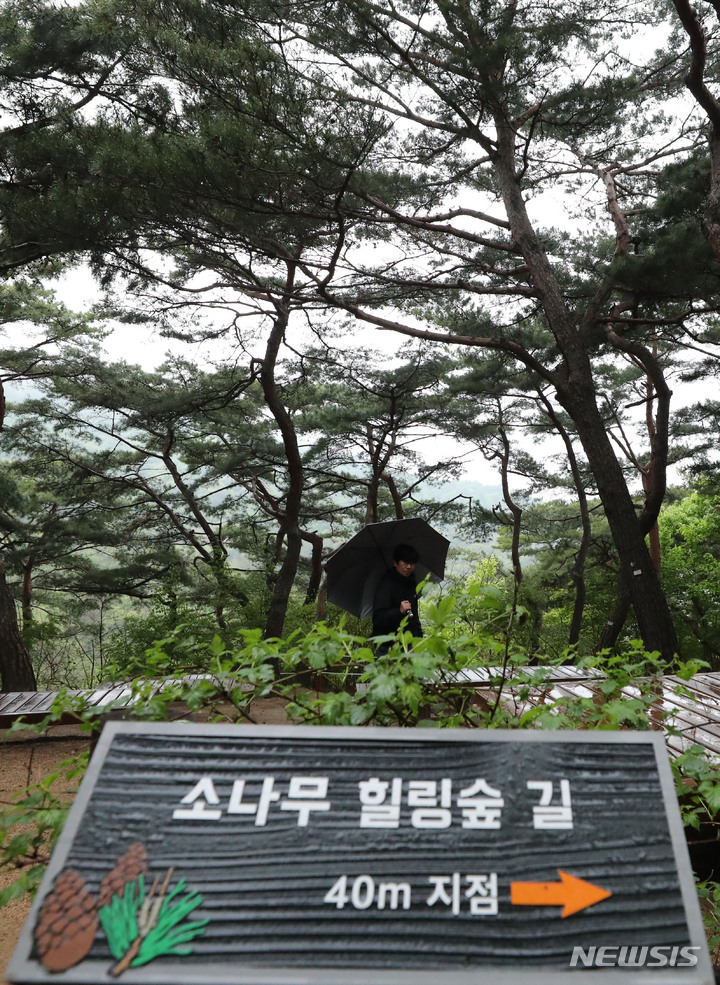 18日午前、ソウル市竜山区の南山公園内にある「松癒しの森」で、市民たちが散策をしていた。きょうから開放された「松癒しの森」は、年中常時開放され、予約なしに誰でも利用することができる。内部の整備時間に当たる月曜日を除き、火曜日-日曜日の午前7時から午後7時まで利用可能だ。