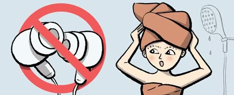 シャワーを浴びた直後はイヤホンをしない方がいい。ぬれた耳の中でイヤホンの細菌が急速に繁殖し、外耳炎を起こす恐れがある。