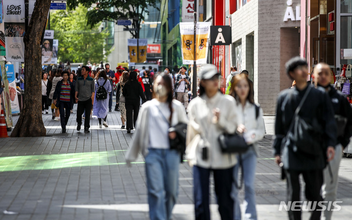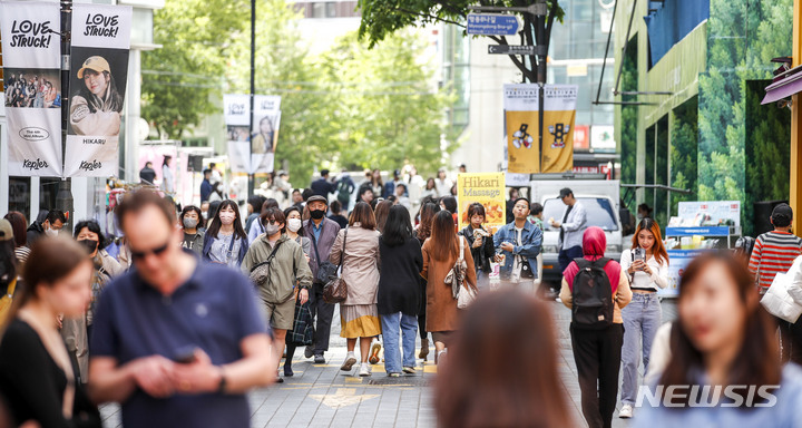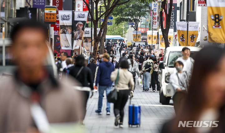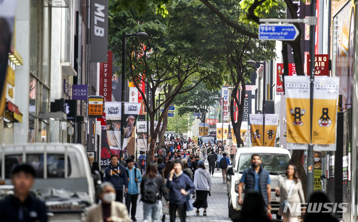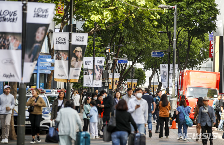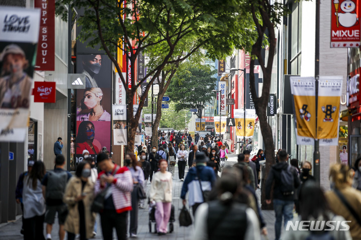 【NEWSIS】23日午前、ソウル市中区のショッピング街・明洞は観光客でにぎわっていた。