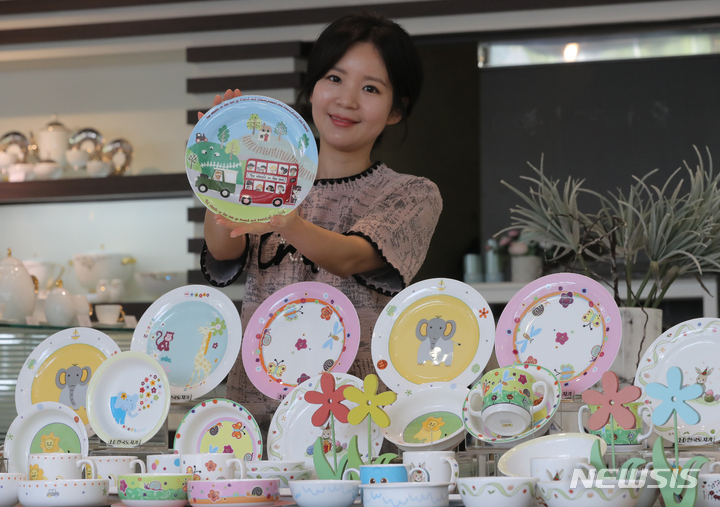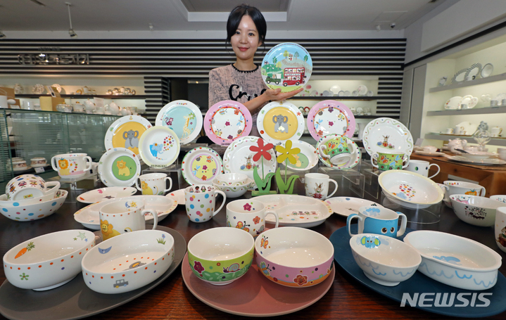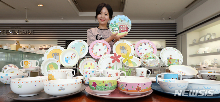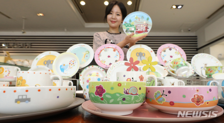 子どもの日を迎えるに当たり、韓国陶磁器が子ども用陶磁器食器セットを売り出す。27日午前、ソウル市東大門区にある韓国陶磁器本社社屋にある売り場で、コンパニオンらが子ども用食器セットを紹介した。