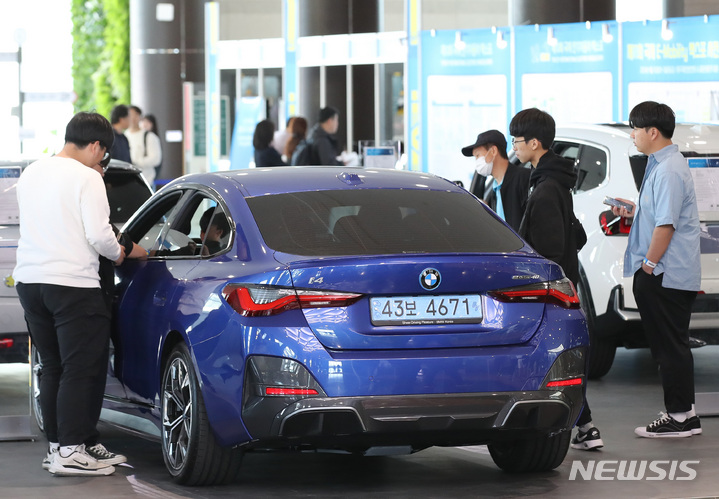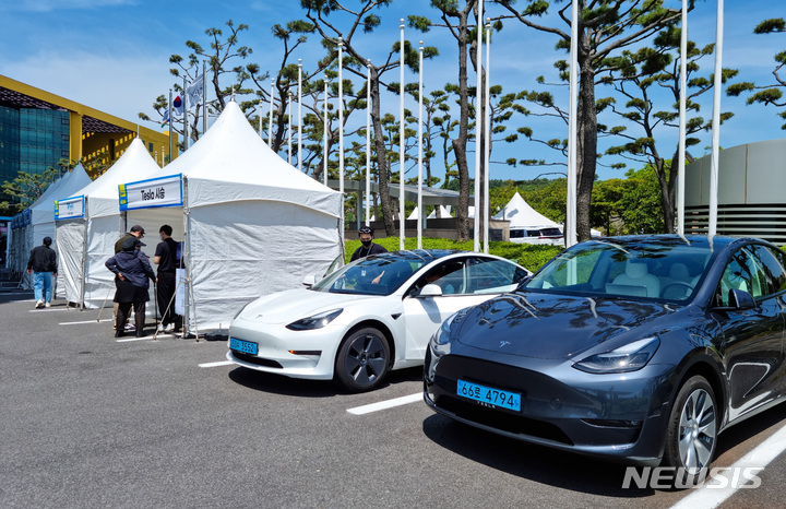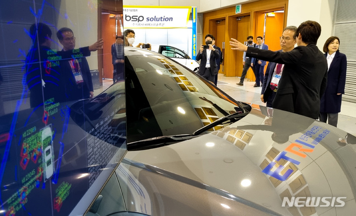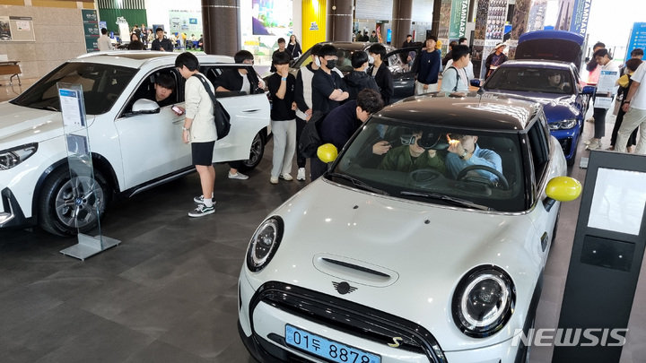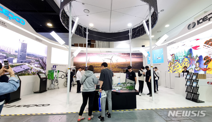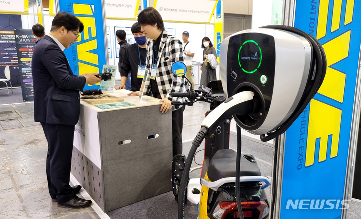 第10回国際電気自動車エキスポ(IEVE)開幕日の2日、済州島西帰浦市の済州国際コンベンションセンター(ICC)展示ブースを訪れた人々が、親環境車や設備を見て回っている様子。